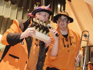 Und dann gibt es im Entersbach noch eine Institution: die Mändigsmusiker. Frontmann Tobias Schätzle und seine wilde Horde bestritten das Finale des Gemeinschaftsabends und ließen es nochmals so richtig krachen und das, obwohl sie am Samstag schon 12 Stunden auf den Beinen waren. Tagsüber feierten sie gemeinsam den 40. Geburtstag ihres Musikerkollegens Stefan Sum, abends brachten sie dann das DGH zum Beben. »O wie ist das schön« schallte es durch die Narrennacht. Pünktlich um Mitternacht kamen auch noch Martin »Mäx« Schilli und Hubert Gissler in den Genuss eines Geburtstagsständchens, ehe das bewährte Fasendmusik-Duo Gisela und Karl-Heinz bis in den frühen Morgen die Regie übernahm.