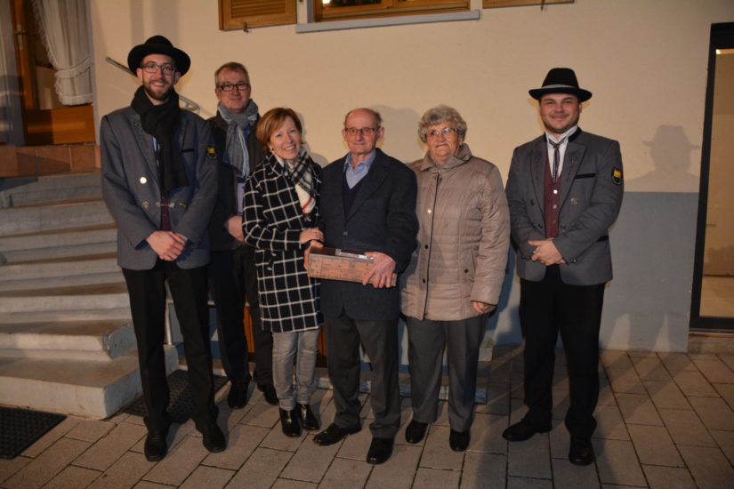 Florian Berger überreichten den Jubilaren Geschenke und dankten für das langjährige Engagement im Verein. Anschließend luden die beiden Jubilare die Musiker in den Landgasthof Pflug ein.