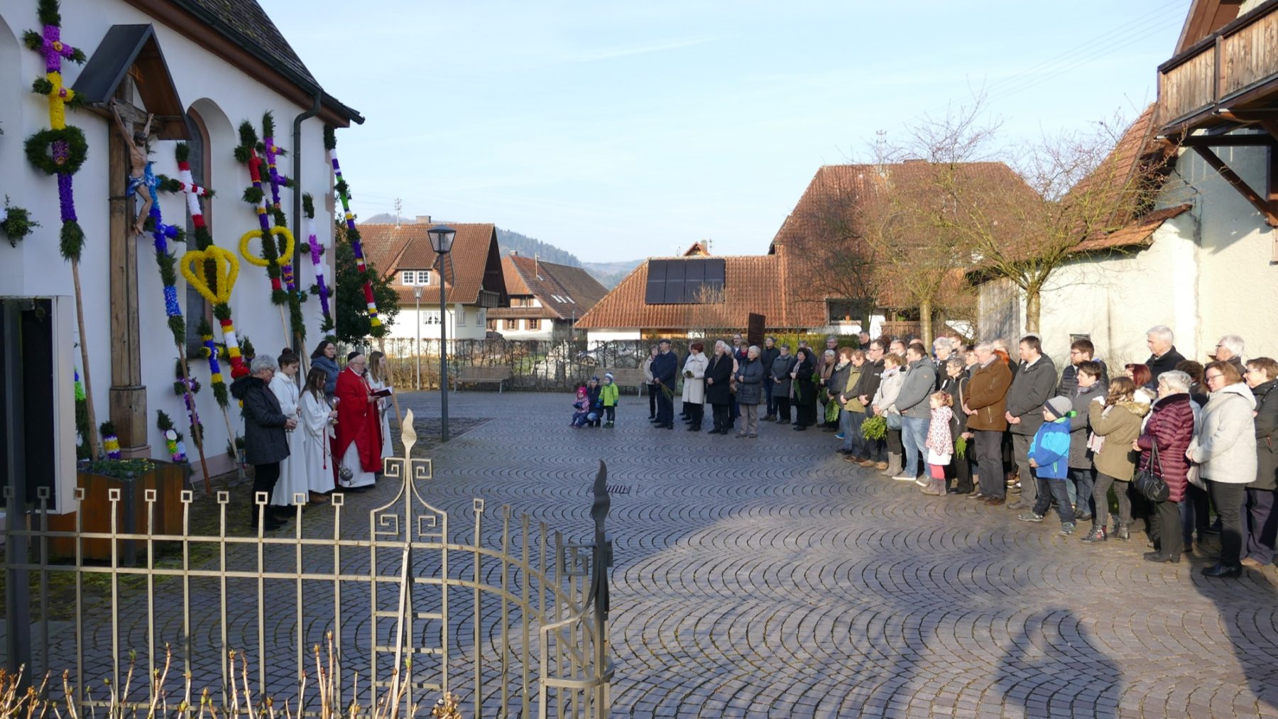 Viele große und kleine Palmen zierten am Sonntag die Unterentersbacher Nikolauskirche. »Ein großes Lob und Dankeschön gilt den Palmbinderinnen«, sagte Pater Pius bei der Weihe der Palmen auf dem Kirchplatz. Er zeigte sich überzeugt, dass dieser gemeinschaftliche Einsatz die Verbundenheit und das Miteinander stärke. »Halten sie dieses Brauchtum auch in Zukunft aufrecht«, bat Pater Pius. Er erinnerte daran, dass die Palmen das Zeichen für das Leben und den Sieg von Jesus beim Einzug in Jerusalem sind. Nach dem feierlichen Sonntagsgottesdienst trugen die Entersbacher Familien ihre Palmen mit nach Hause. Dort zieren sie nun die Gebäude und sollen Schutz gewähren und Gottes Segen bringen.
