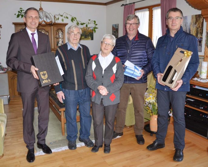 Geburtstagsrunde im Hause Huber: Bürgermeister Günter Pfundstein (links) sowie Bernd Borho und Paul Gutmann (von rechts) gratulierten Franz Huber zu seinem 85. Geburtstag, worüber sich auch seine Frau Anneliese freute. Foto: Hanspeter Schwendemann