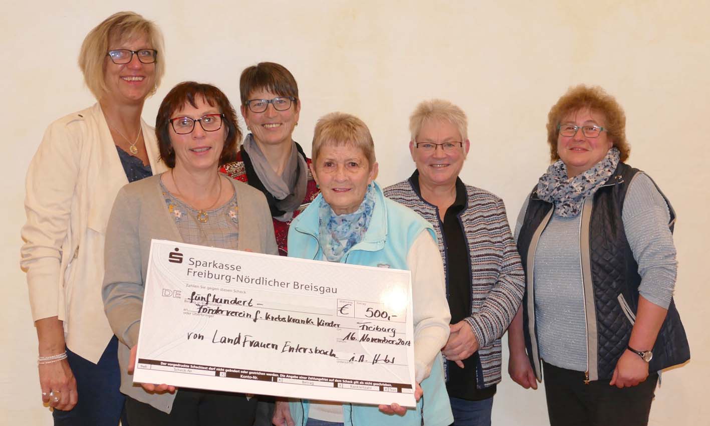 Die LandFrauen Entersbach haben eine Spende in Höhe von 500 Euro an den Förderverein für krebskranke Kinder e. V. Freiburg überbracht.