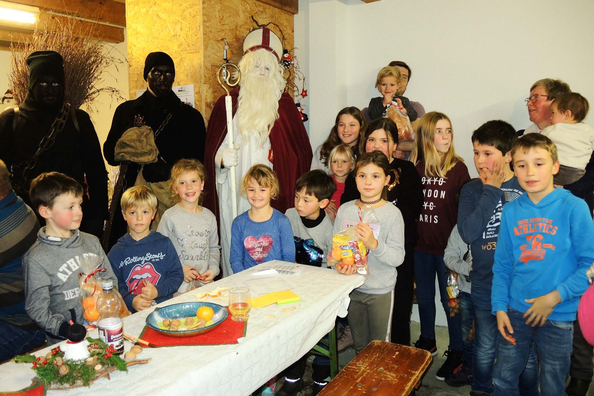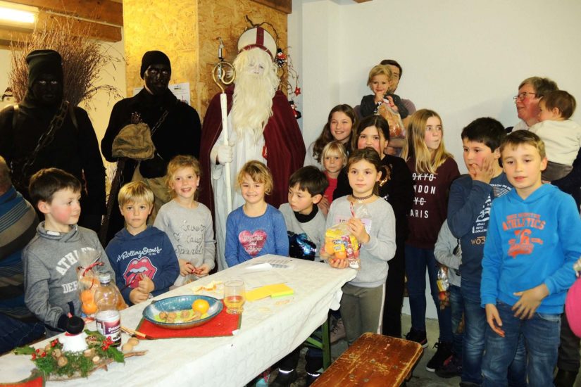 Foto: Franz HuberDas Glockengeläut der Nikolauskirche verstärkte noch die romantische Stimmung des schönen, milden Abends. Über das Neubaugebiet wanderte man hinauf zum unbeleuchteten Oberen Hillig und wieder hinunter ins Oberdorf. Hier, bei Familie Lerch, fand die große Gruppe einen neuen, warmen und schön geschmückten Raum vor, in dem die Tradition des Nikolausabends für die Wandererkinder fortgesetzt werden konnte. Tradition sind auch schon die heißen Würste nach der Laternenwanderung und das erste Weihnachtsgebäck. Nun galt es noch, den Entersbacher Nikolaus herbeizusingen, der sich extra für die Wandererkinder so früh auf den Weg gemacht und sogar zwei Schwarze mitgebracht hatte. Viel Lob und auch etwas Tadel hatte der Nikolaus wieder in seinem goldenen Buch aufgeschrieben, denn der Heilige Mann sieht ja bekanntlich alles. Aber Auge in Auge mit zwei schwarzen Gesellen versprach auch der frechste Knirps Besserung. Die kleine Frieda trug sogar mit ein klein wenig Unterstützung von der Oma dem Nikolaus ein Gedicht vor; das war wirklich mutig und lobenswert. Natürlich gab es anschließend für alle Kinder wieder ein Geschenk, und mit einem herzlichen »Niklaus ist ein guter Mann« verabschiedete man den Heiligen und seine schwarzen Begleiter. Mit einem gemütlichen Beisammensein klang der Nikolausabend aus.