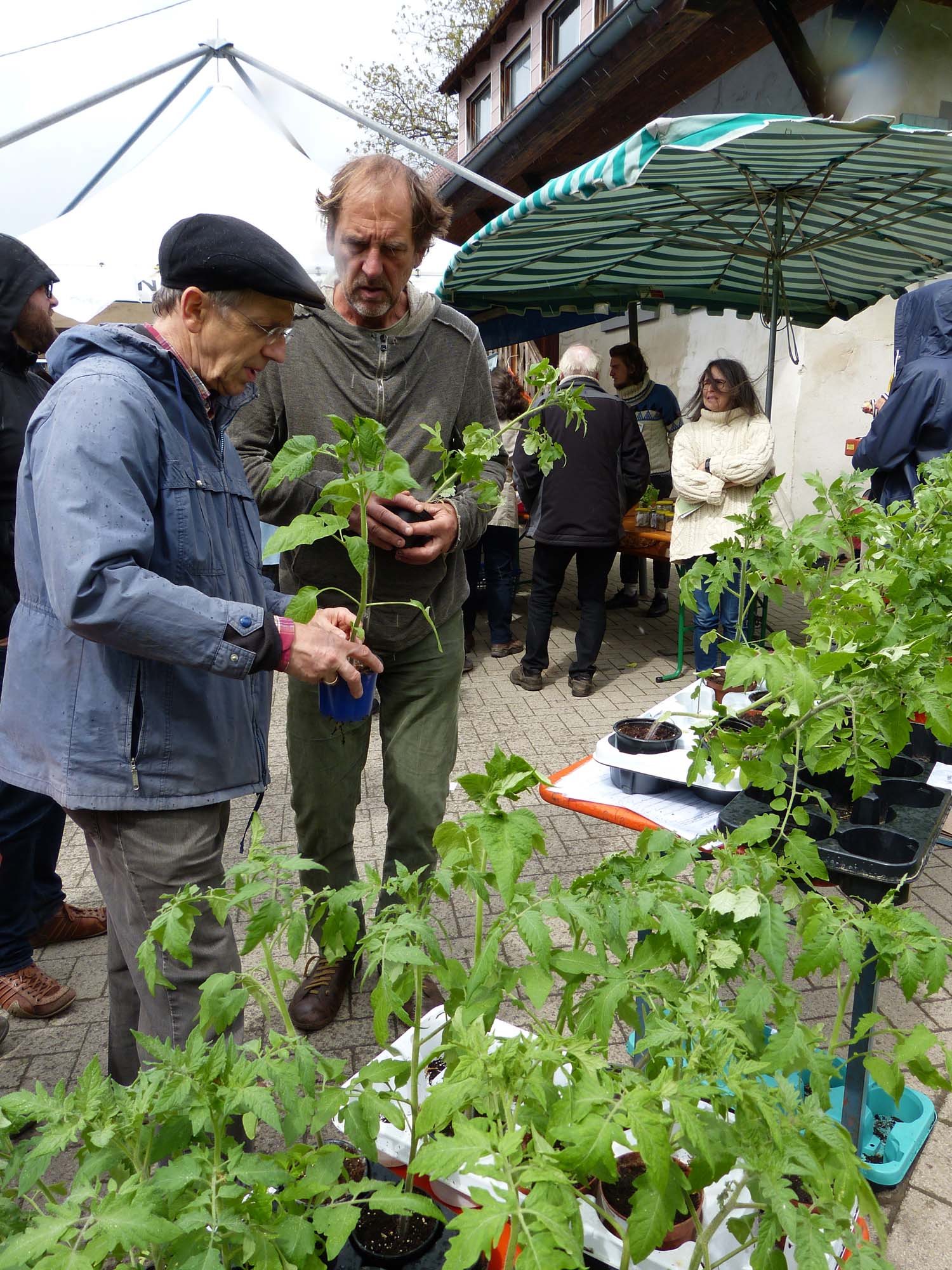 Eine Ausnahme vom Tauschprinzip machten die Veranstalter bei Tomatenpflanzen. Sage und schreibe 40 verschiedene, samenfeste Sorten in unterschiedlichsten Formen und Farben konnten von Martin Hartmann, einem privaten Züchter aus Haslach, erworben werden; der Erlös war für die Renovierung des Jugendheims Fehrenbacherhof bestimmt.