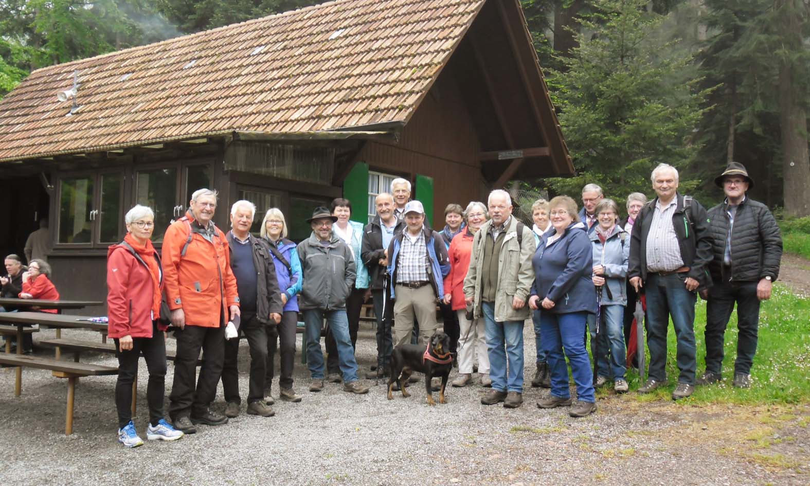 Beim weiteren Wegverlauf erreichte man die Nähe des berühmten Bärensteines, ein Grenzstein des einst freien Reichstales Harmersbach. Über den Löwenrücken, mit 765 Metern dem höchsten Punkt, ging es nun bergab zum Einkehrziel „Löcherbergwasen-Hütte“, wo man es sich gemütlich machte. Der Rückweg verlief auf der Renchtal-Seite wieder bergauf zum Schäfersfeld.