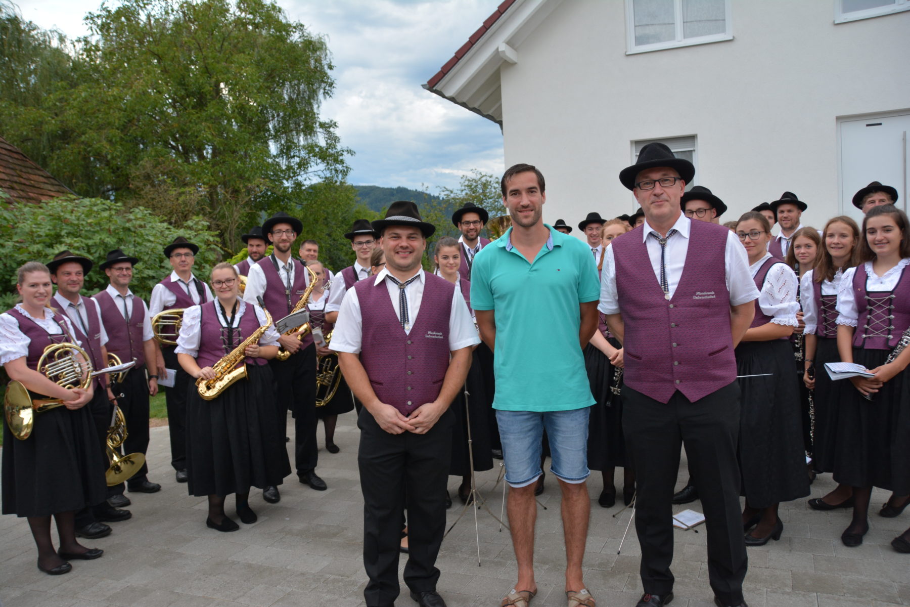 Am Freitagabend stand vor der Arbeit das Feiern an erster Stelle. Christian Dumin zeigte sich überwältigt vom Aufmarsch, der von der Feuerwehr Unterentersbach angeführt wurde. Unter der Regie von Abteilungskommandant Xaver Schwendemann stellten die Kameraden mit Muskelkraft einen 14 Meter hohen Maien vor dem Wohnhaus der Familie Dumin in der Gass auf. Die Musikkapelle, angeführt von Dirigent Xaver Meier, spielt dazu ein schwungvolles Ständchen. Selbst der Himmel vergoss am Freitagabend einige Freudentränen. Auch die Landfrauen, der Förderverein, die Narren, die Hobbykicker, der Cego-Club und die Jäger haben Christian Dumin schon zur Wahl zum Ortsvorsteher gratuliert. Ebenfalls erhielt seine Frau Andrea Dumin viele Glückwünsche.