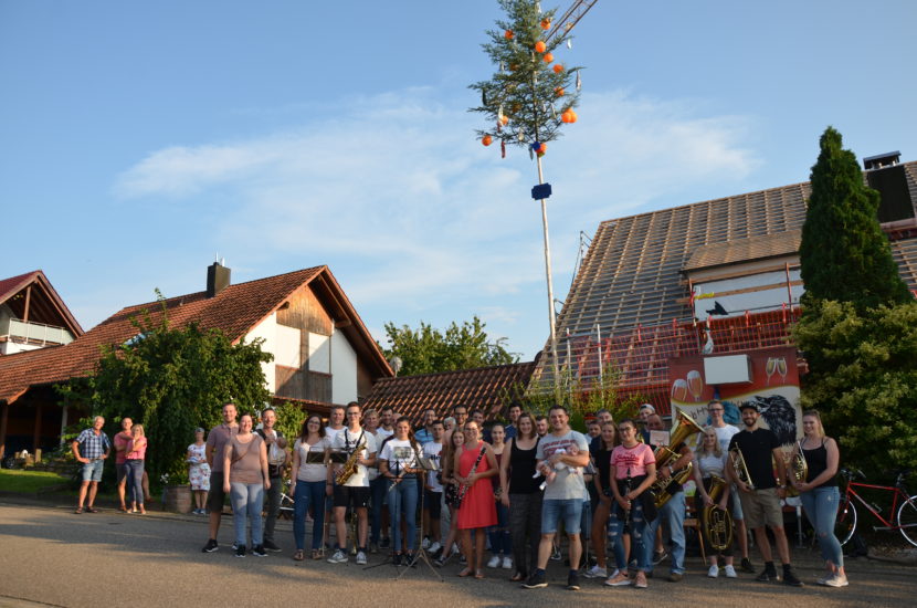 Diese brachten Glückwünsche mit und dekorierten mit zwei schönen Störchen und einem prächtigen Maibaum das Wohnhaus. Gekommen waren die Musikerinnen und Musiker des Musikvereins Unterentersbach und ihr Musikerstorch; weiter die Mändigs-Musiker aus Unterentersbach. Sie hatten einen tollen Maibaum geschlagen, diesen mit Luftballons und Babykleidern verziert und in Teamleistung aufgerichtet. Die dritten im Bunde waren die Kameradinnen und Kameraden des Spielmannszug von der Freiwilligen Bürgerwehr Zell a. H. und ihr Adebar in passend grüner Uniform.
