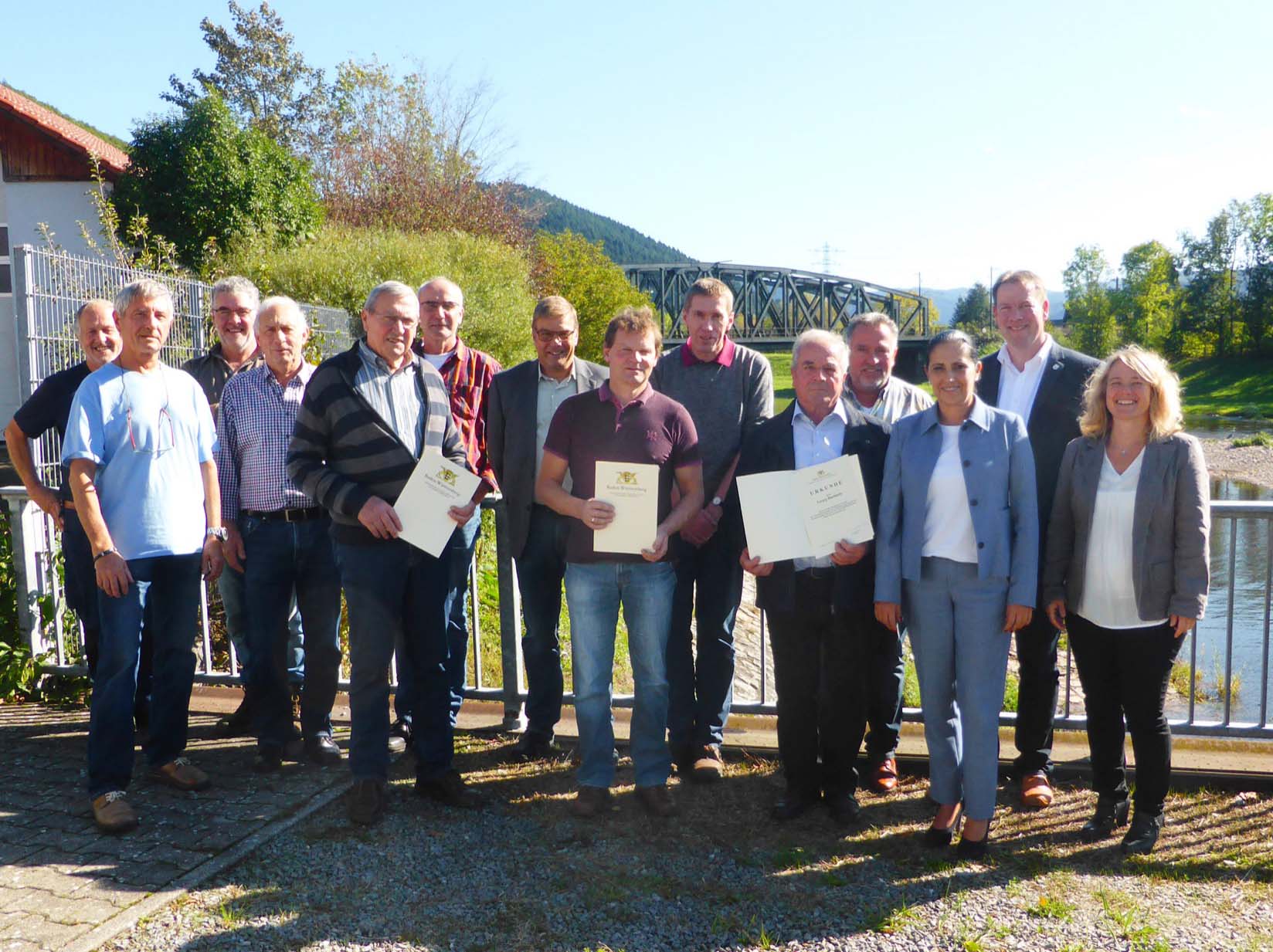 Über die erfolgreich durchgeführte Maßnahme freuten sich gemeinsam mit dem Leiter des verantwortlichen Amts für Vermessung und Flurneuordnung im Landratsamt Ortenaukreis, Ansgar Jäger, auch Michael Ortlieb vom Regierungspräsidium Freiburg, Bürgermeisterin Daniela Palleta aus Biberach als Vertreterin der beteiligten Gemeinden der Teilnehmergemeinschaft sowie die Mitglieder des Vorstands der Teilnehmergemeinschaft.