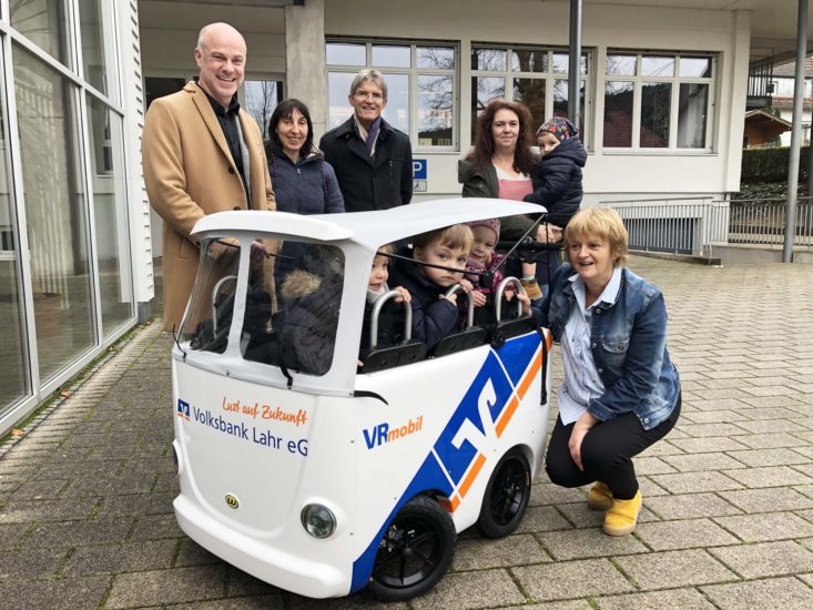 Der Kindergarten Wirbelwind aus Unterentersbach hatte ein lustiges Video gedreht und obendrein das nötige Glück. Jetzt gehört ein schicker weißer VRmobil-Kinderbus im Wert von 3.150 Euro zum Kita-Fuhrpark. Vor einigen Tagen wurde er von Mathias Hug, Leiter im Volksbank Kompetenzcenter in Zell am Harmersbach, offiziell übergeben.