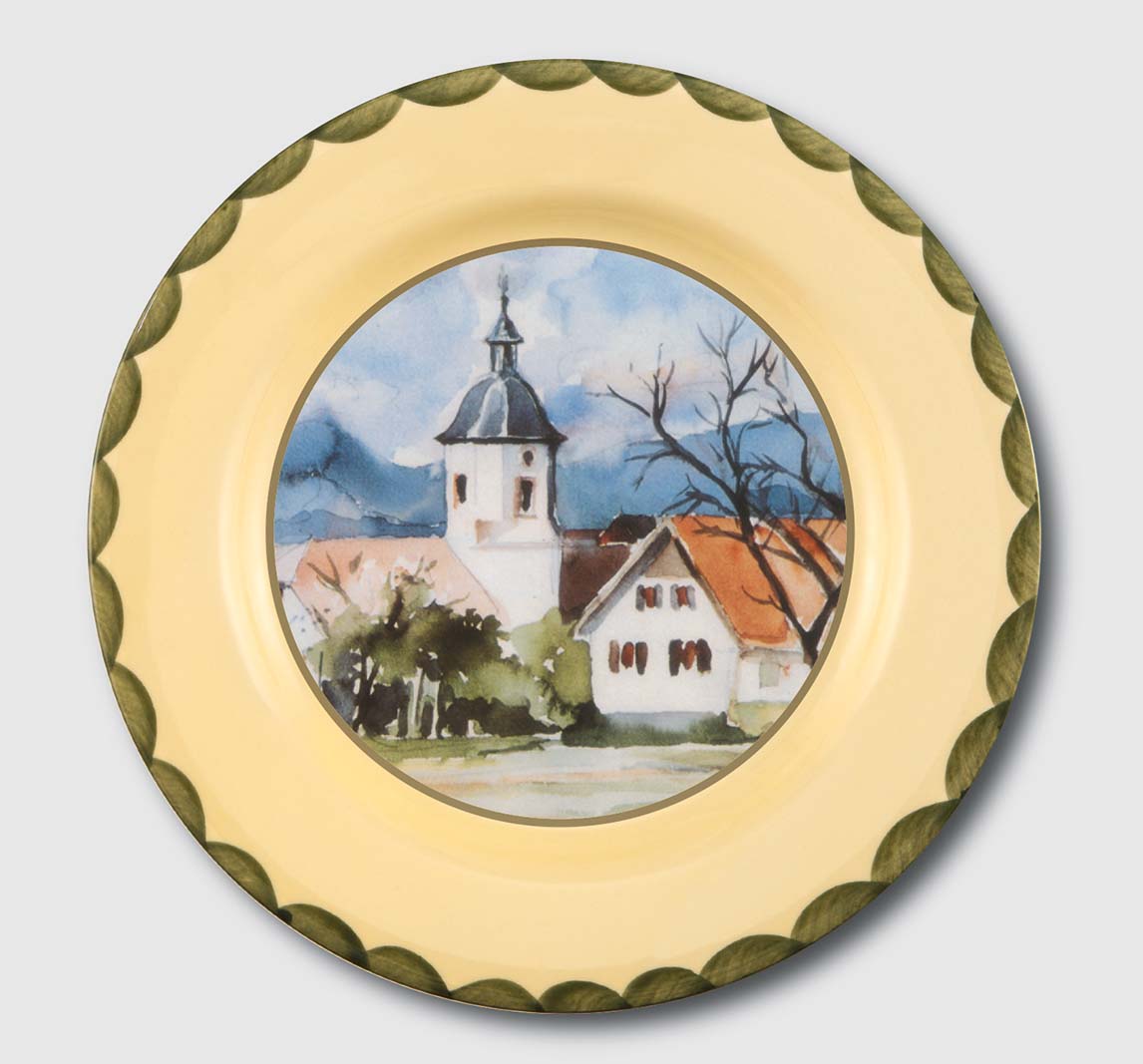 Beim Motiv »Alt Entersbach« könnte es sich um eine späte Arbeit von Karl Schöner handeln. Bekanntlich hat der Obermaler der Zeller Keramik im Jahr 1898 zur Geburt seiner Tochter das Dekor »Hahn und Henne« entworfen. Der mit gekonnten Pinselstrichen geränderte Teller findet sich auch bei dem Unterentersbacher Fundstück wieder. Andere Experten schließen aus der Pinselführung beim Motiv der Nikolauskirche darauf, dass es sich bei dieser Geschirrserie um ein frühes Motiv von Künstler Haaf-Walter handelt. Der Rand könnte dann bei der Herstellung in der Zeller Keramik sozusagen als »praktische Ergänzung« hinzugekommen sein.