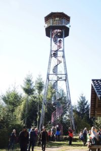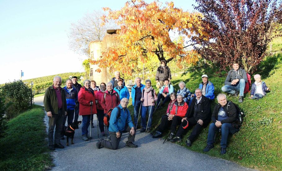 Nachdem mit viel Glück die passenden Parkplätze gefunden waren, machte man sich entlang der Waldgrenze auf den Weg. Herrliche Ausblicke öffneten sich über unzählige Rebhänge und auf das gegenüberliegende Schloss Staufenberg. Man passierte die Gemarkungsgrenze zu Oberkirch und nach einem kurzen, knackigen Anstieg erreichte die Gruppe das »Panoramahisli«. Nicht nur das traumhafte Panorama faszinierte hier die Wanderer, auch die ausgefeilte Kurbeltechnik, die gekühlte Getränke aus der Tiefe hervorzauberte. Der Weiterweg führte über die Schafhofhöhe mit Blick bis zur Hornisgrinde. Nun befand man sich auf dem »Oberkircher Brennersteig«, der hinauf zum Geigerskopfturm führte. Wer den 20 Meter hohen, regenbogenfarbenen Turm über dem Bottenauer Tal erklommen hatte, den erwartete eine traumhafte Aussicht. Weiterhin auf dem Brennersteig führte der Weg weiter, hinab zu dem von Rebhängen umgebenen Busseck-Hof. Hier durften sich die Wanderer in der Herbstsonne niederlassen und die Spezialitäten des Hauses genießen. Nach herzlicher Verabschiedung und einem Gruppenfoto machte man sich auf den Rückweg. Er führte auf Waldwegen unterhalb des Geigerskopfs zurück zur Schafhofhöhe und den bereits bekannten Weg zurück zum Ausgangspunkt, den man mit den letzten Strahlen der untergehenden Sonne erreichte. Hier bedankte man sich mit verdientem Applaus bei den Tourenführern Irmgard und Gerhard Britz für die Organisation dieser herrlichen Herbstwanderung.