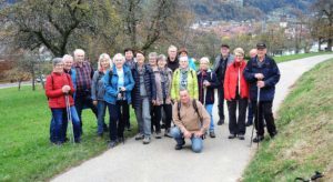 Hinter dem Sommerhaldenhof führte ein Waldpfad zum Schänzle mit seinen weithin sichtbaren Tipi-Zelten des Waldkindergartens. Das schöne herbstliche Hintergrundpanorama nutzte Franz Huber zu einem letzten Gruppenfoto in diesem Wanderjahr. Vorbei an der Schule und durch die Siedlerstraße war der Ausgangspunkt rasch wieder erreicht. Hier durfte Tourenführerin Erna Schäfer ein herzliches Dankeschön der Gruppe entgegennehmen.