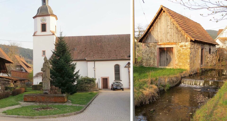 Der kurze historische Rundweg beginnt beim alten Schulhaus, geht weiter zum Gasthaus Pflug und dann Richtung Kirche, an »Furtwänglers« Birke Liblig vorbei zum Nikolausbrunnen, s’Kirchbure, Bachkuchi, Vesperstube Schwarz-Webers, weiter zum Jockeleshof und dann im Oberdorf an einem Leibgeding/Altenteil vorbei bis zur Gehrmatt, wo der Weg endet.