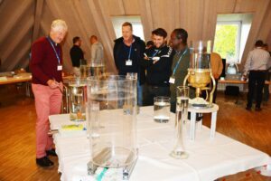 Wirbel spielen auch in der Produktion von Heilmitteln eine wichtige Rolle. Markus Giesder von der Wala Heilmittel GmbH nahm die Zuhörer mit auf eine spannende Reise über die Entstehungsgeschichte des Krebsheilmittels Iscucin. Auf Anregung von Viktor Schauberger ließ der anthroposophische Arzt Dr. Köller in den 1960er Jahren eine Mischapparatur für Sommer- und Wintermistelsäfte bauen, wobei die Vorgaben von Rudolf Steiner in einer gänzlich neuen Weise umgesetzt wurden als es bei anderen Herstellern der Fall war. Der Erfolg gab Köller recht und so ist sein Wirbelverfahren heute noch nahezu unverändert im Einsatz. Der Verein arbeitet aktuell eng mit der Wala zusammen, um ein tieferes Verständnis für die Bewegungs- und Wirkmechanismen im Mischprozess zu erarbeiten.