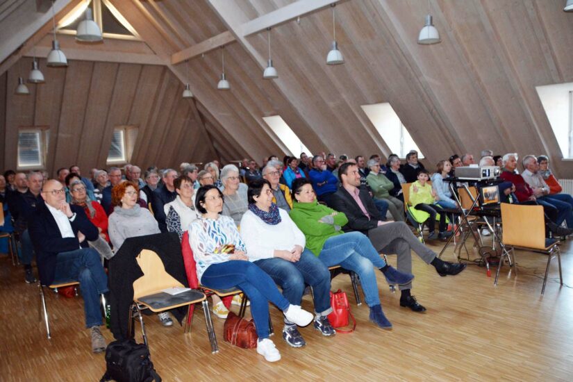 Sowohl die Bilanz des Fördervereins nach über einem halben Jahrhundert Einsatz als auch die herrliche Bildauswahl von Franz Huber beeindruckten die Gäste des Abends. Vereinsvorstand Josef Pfaff freute sich über den sehr guten Besuch und begrüßte allen voran Ortsvorsteher Christian Dumin und Ortsvorsteher a. D. Horst Feuer, auf dessen Anregung der Förderverein Mitte der 1990-er Jahre ins Leben gerufen wurden. Erstes großes Ziel war der Bau des Dorfgemeinschaftshauses. Der Verein konnte schon nach kurzer Zeit 20.000 D-Mark an die Ortsverwaltung übergeben.