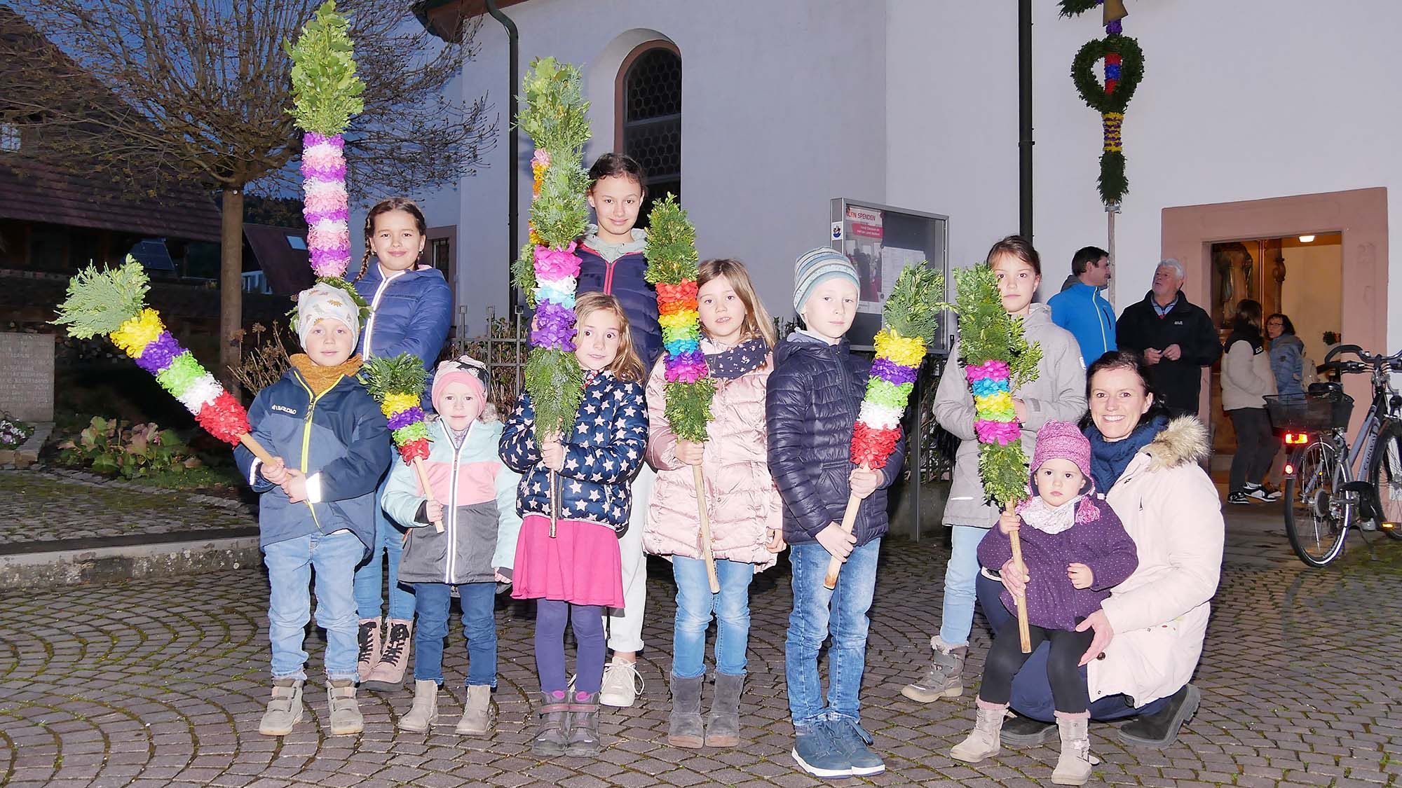 Die Tradition des Palmenbindens bleibt in Unterentersbach lebendig. Eine stattliche Anzahl von großen und kleinen Palmen ist von Pfarrer Bonaventura Gerner am Vorabend des Palmsonntages geweiht worden.