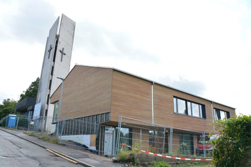 Direkt neben der Kirche baut die evangelische Kirchengemeinde ein neues Gemeindehaus mit einer Pfarrwohnung und einem Gemeindesaal.