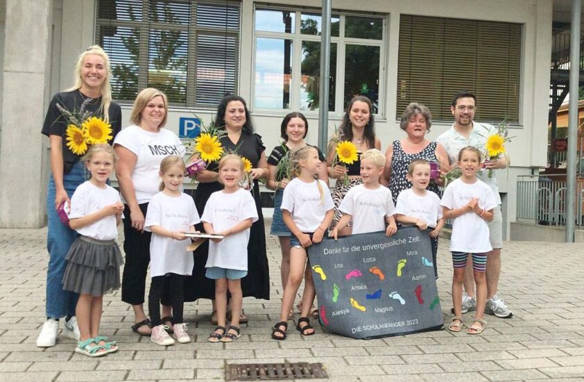 Nach der Stärkung wurde es dann ernst: Die Schulanfängerpiraten verabschiedeten sich mit einem Rap und bekamen im Anschluss von ihren Bezugserziehern und Eltern die Schultüten überreicht.