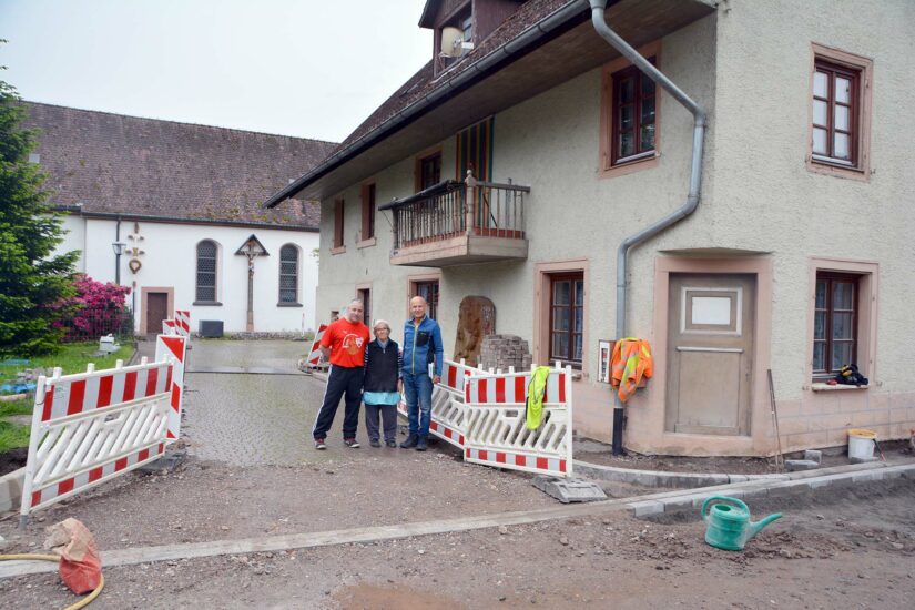 Auf Bildern aus dem Jahr 2014 ist zu sehen, dass der Kirchplatz bei einem Hochwasser schon komplett überspült war. Die Familie Parisi hat deshalb an einer Außentür den Sockel aufgemauert, damit das Wasser, das bei Hochwasser die Dorfstraße herunterläuft, nicht so schnell in ihr Wohnhaus eindringt. Dabei mussten sie in Kauf nehmen, dass sich die Tür nun nicht mehr öffnen lässt. Jakob Allgaier berichtet, dass sich im Keller seines Gebäudes der Bunker für die Hackschnitzel-Heizung befindet. Wenn dort Wasser eindringt, wäre das für ihn eine Katastrophe.
