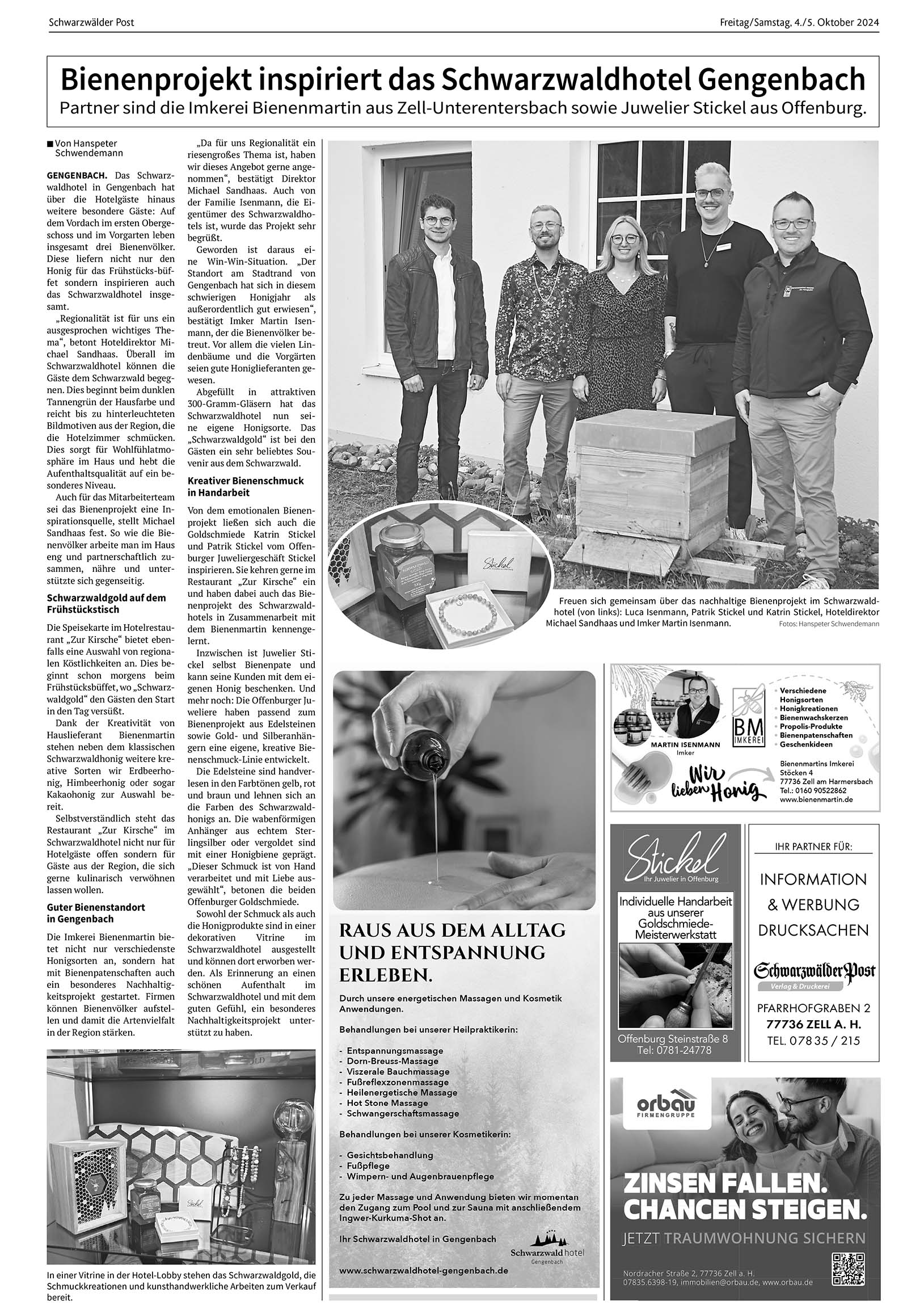 Bienenprojekt inspiriert das Schwarzwaldhotel Gengenbach