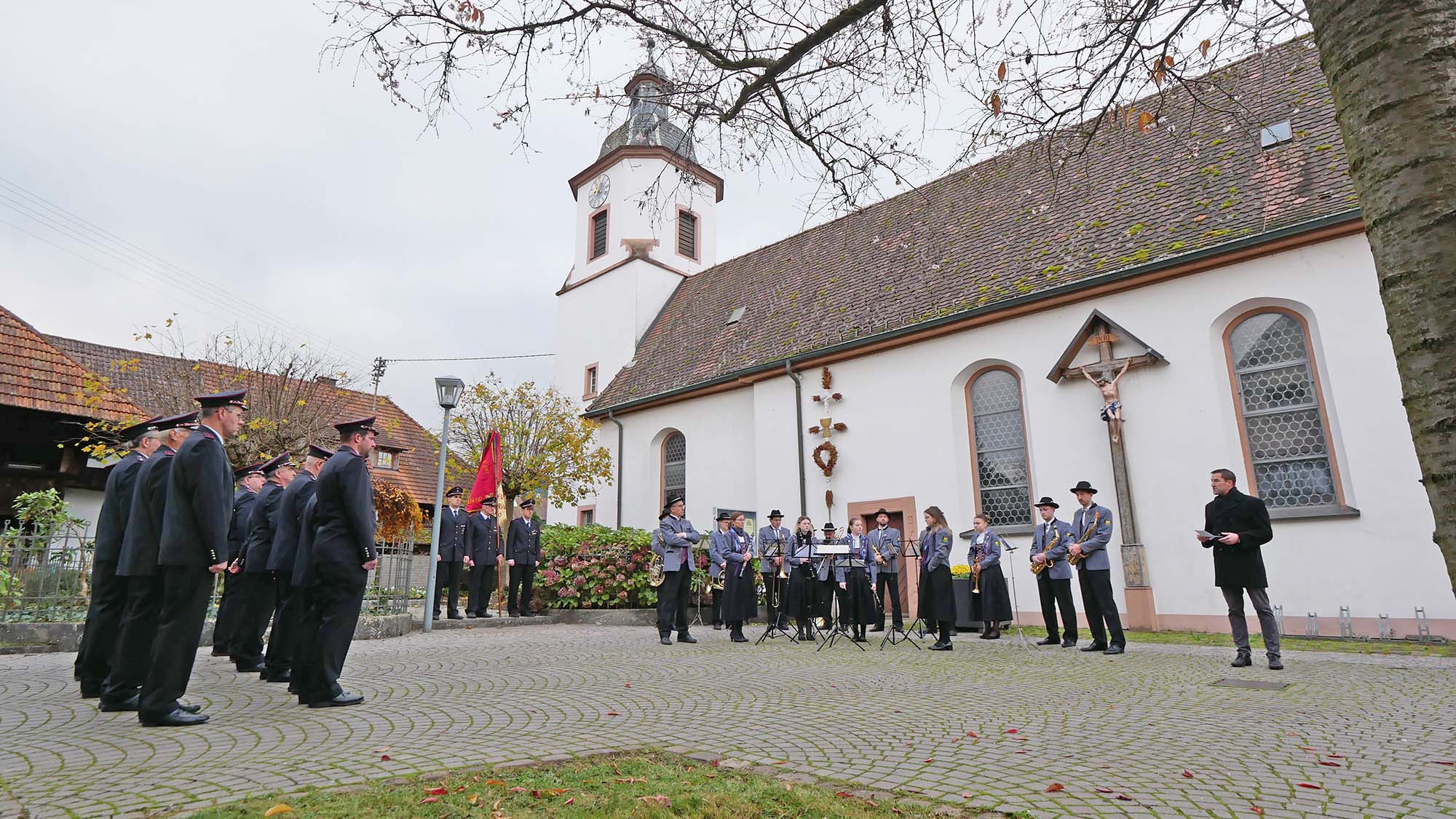 Mit dieser Botschaft legten Ortsverwaltung und Feuerwehr einen Kranz am Mahnmal der trauernden Frau ab. Musikalisch wurde dieser Akt von dem Ensemble des Musikvereins Unterentersbach mit dem Lied „Ich hatte einen Kameraden“ feierlich umrahmt.