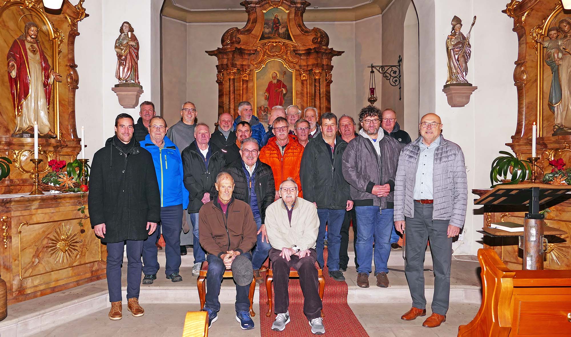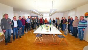 Auf Einladung von Ortsvorsteher Dumin und „Ehrenklaus Horst Feuer“ hatte man zu einem Umtrunk ins Dorfgemeinschaftshaus eingeladen. Klaus Jilg, der das Treffen wieder organisierte, begrüßte alle Anwesenden: Ortsvorsteher Dumin und Horst Feuer mit Gattin, die ehemalige Ortsvorsteherin Andrea Kuhn, Pater Irenäus und Messnerin Hilde Boschert, die zum Gelingen dieses Tages beigetragen hatten.