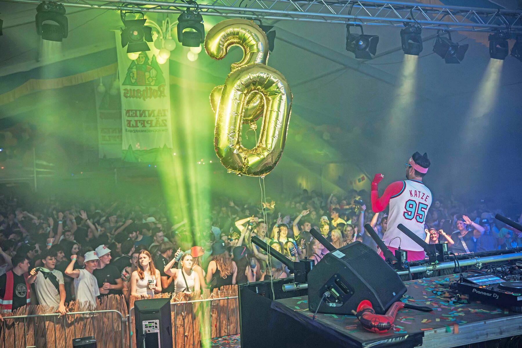 Für den richtigen Sound sorgten DJ Yellow und das Mütze Katze Duo. Jan Brucker alias Yellow heizte ab 21 Uhr ordentlich ein und sorgte dafür, dass die Stimmung von Anfang an auf Betriebstemperatur war. Um halb zwölf übernahm das Mütze Katze Duo und drehte die Party mit einer Konfetti- und Pyroshow auf die nächste Stufe. Die zwei Power-Party-Katzen brachten das Zelt mit ihren abgefahrenen Beats, glitzerndem Konfetti-Regen und wilden Tanzeinlagen zum Beben. Von Ohrwürmern bis hin zu fetten Bässen – die Crowd feierte und tanzte, als gäbe es kein Morgen.