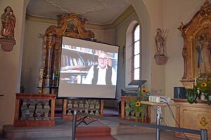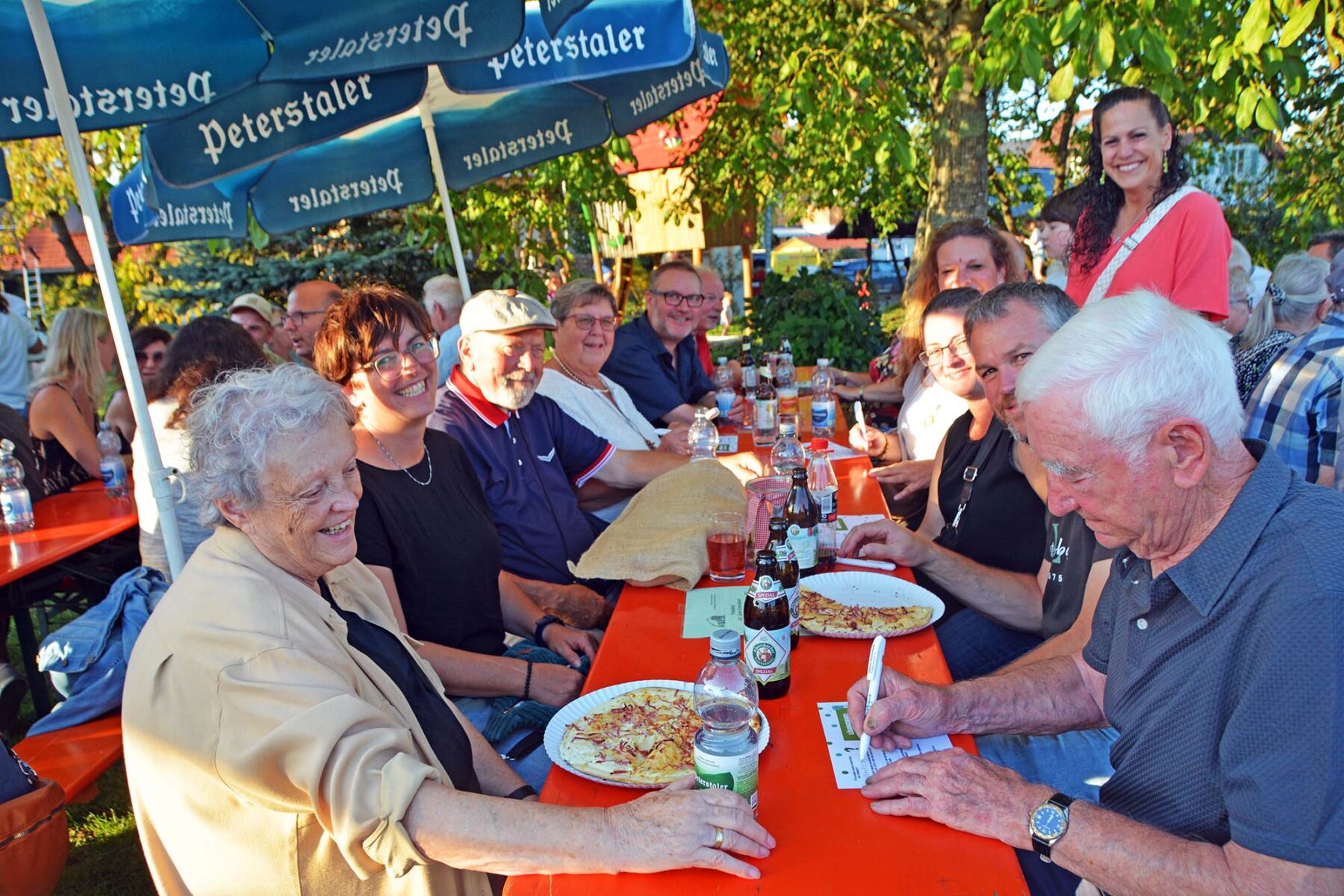Es war ein wunderschöner Platz unter einem großen Nussbaum mit freiem Blick auf die Friedenskapelle und das die Burg Geroldseck einschließende Panorama. Gegen 16:00 trudelten dann bei allerbestem Spätsommerwetter die ersten Entersbacher ein, darunter zahlreiche Helfer, erkennbar an Ihren einheitlichen T-Shirts. Der Festplatz war zu späterer Stunde idyllisch beleuchtet, die Stimmung war heiter und gelöst und den Getränken wurde gut zugesprochen. Das schöne Fest fand sein Ende gegen 22:00 Uhr.