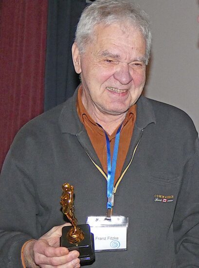 Franz Fitzke reagierte sichtlich gerührt auf die Laudatio, ergriff seinerseits das Mikrofon: „Das ist ein Ansporn! Ich höre natürlich jetzt nach meinem letzten Schauberger-Film nicht auf, sondern fange erst richtig an.“ Dafür erntete er Jubelrufe und langanhaltenden Applaus.