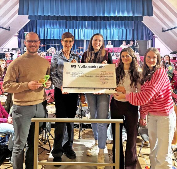 Bei ihrem Benefizkonzert in der stimmungsvoll im Kerzenschein erleuchteten Nikolauskirche feierte die Bläserjugend ihr 30-jähriges Bestehen – und verband den Anlass mit einer besonderen Geste: Der Erlös des Abends wurde an den Kinder- und Familienhospizdienst Ortenau übergeben.