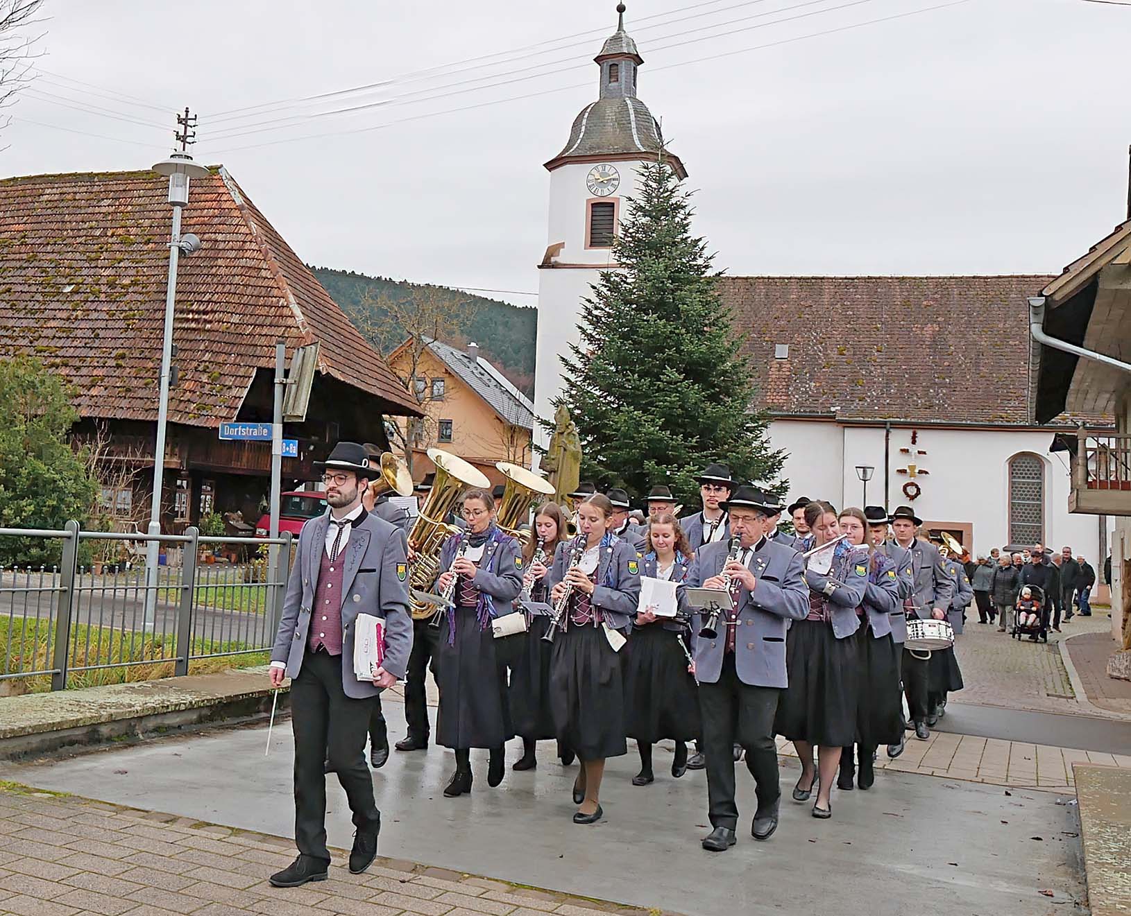 Der zweite Adventssonntag stand in Unterentersbach ganz im Zeichen des Kirchenpatrons. Nach dem großen Jahreskonzert am Samstagabend rückte die Musikkapelle Unterentersbach am Sonntagmorgen erneut aus und begleitete den Gottesdienst zum Patrozinium in der Nikolauskirche.