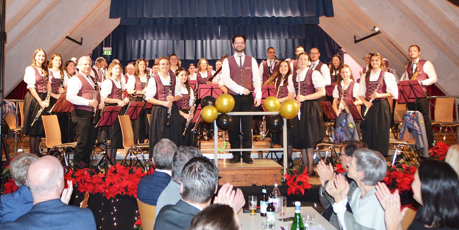 Vorstandssprecher Florian Berger heizte die Vorfreude an, versprach „Hollywood im DGH“ und merkte an, dass die Oscar-Verleihung von großen Zahlen lebe. Damit könne auch der Musikverein Unterentersbach dienen. Das Orchester ist kräftig auf über 60 Aktive angewachsen. Für Hubert Rothmann, Jana Kalt und Lijan Alst war der Auftritt beim Nikolauskonzert Premiere.