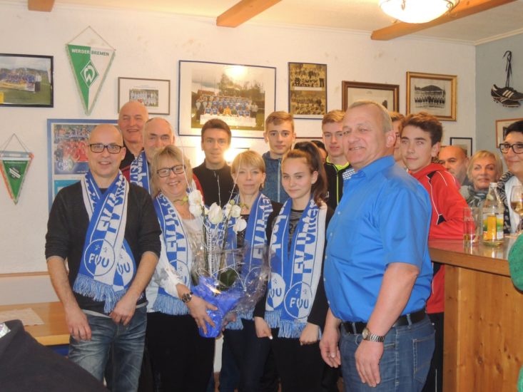 Seit dem 1. Dezember hat der FVU in seinem Clubheim eine neue Clubheimwirtin. Es ist wie beim Sport selbst, wenn ein Spieler oder Spielerin geht, bedauert man dies, doch man schaut nach vorne, denn es muss ja weitergehen. Dagmar Schwarz hat über fünfzehn Jahre im damaligen Café »Johanna« in Unterharmersbach gearbeitet. Ihre Eltern Heinz Harter und »Mutti« sind als ehemalige Pächter an verschiedenen Orten bekannt. Eine ganz tolle Familie steht hinter Dagmar und wird sie vor allem bei den Heimspielen der Jugend und Aktiven Mannschaften unterstützen. Die Vorstandsmitglieder Michael Schwarz, Daniel Uhl und die beiden Vorsitzenden Dieter Heitzmann und Martin Schwarz begrüßten die ganze Familie und diese bekamen zum Einstand einen Fan-Schal. Der FVU wünscht Dagmar alles Gute und hofft auf Unterstützung der FVU-Familie der Mitglieder.