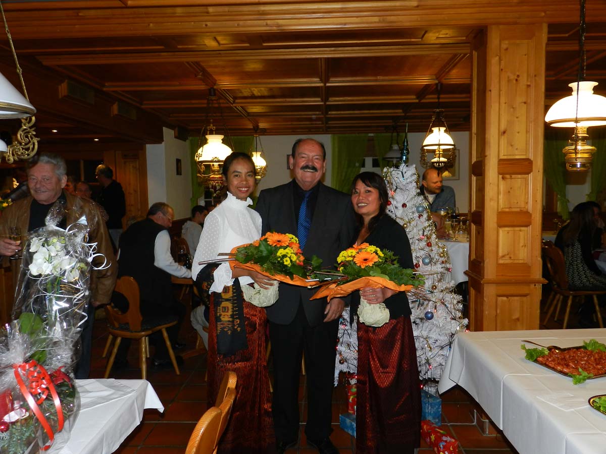 Zur Eröffnung war auch Ortsvorsteher Hans-Peter Wagner gekommen. Er freute sich, dass nun die »Adler-lose« Zeit endlich vorüber ist und wünschte den beiden bewährten und bekannten Wirtinnen viel Erfolg und viele Gäste. Besonders freute es ihn, dass es im »Adler« neben der Thailand-Küche wie bisher auch deutsche Gerichte gibt und damit eine Tradition erhalten bleibt. Er überreichte den beiden Wirtinnen im schicken thailändischen Outfit einen Blumenstrauß.