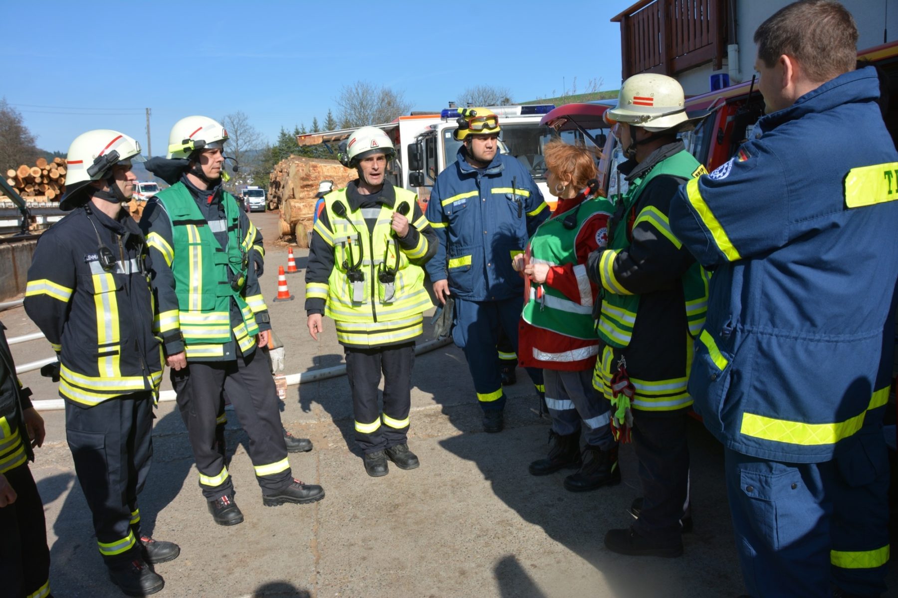 Die Zeller Gesamtfeuerwehr stellte sich bei ihrer Frühjahrsübung am Samstag einem realistischen Übungsszenario. Kinder spielen aufgrund eines Geburtstags auf dem Betriebsgelände des Sägewerks Burger. Beim Zündeln entfachen sie in einer der Produktionshallen ein Feuer. Dadurch kommt es wegen brennbarer Flüssigkeiten zu einer Verpuffung. Das Unglück nimmt seinen Lauf. Elf Personen werden verletzt. Durch den Funkenflug breitet sich das Feuer rasch auf eine zweite Halle aus und auch das Wohngebäude der Familie Burger ist bedroht.