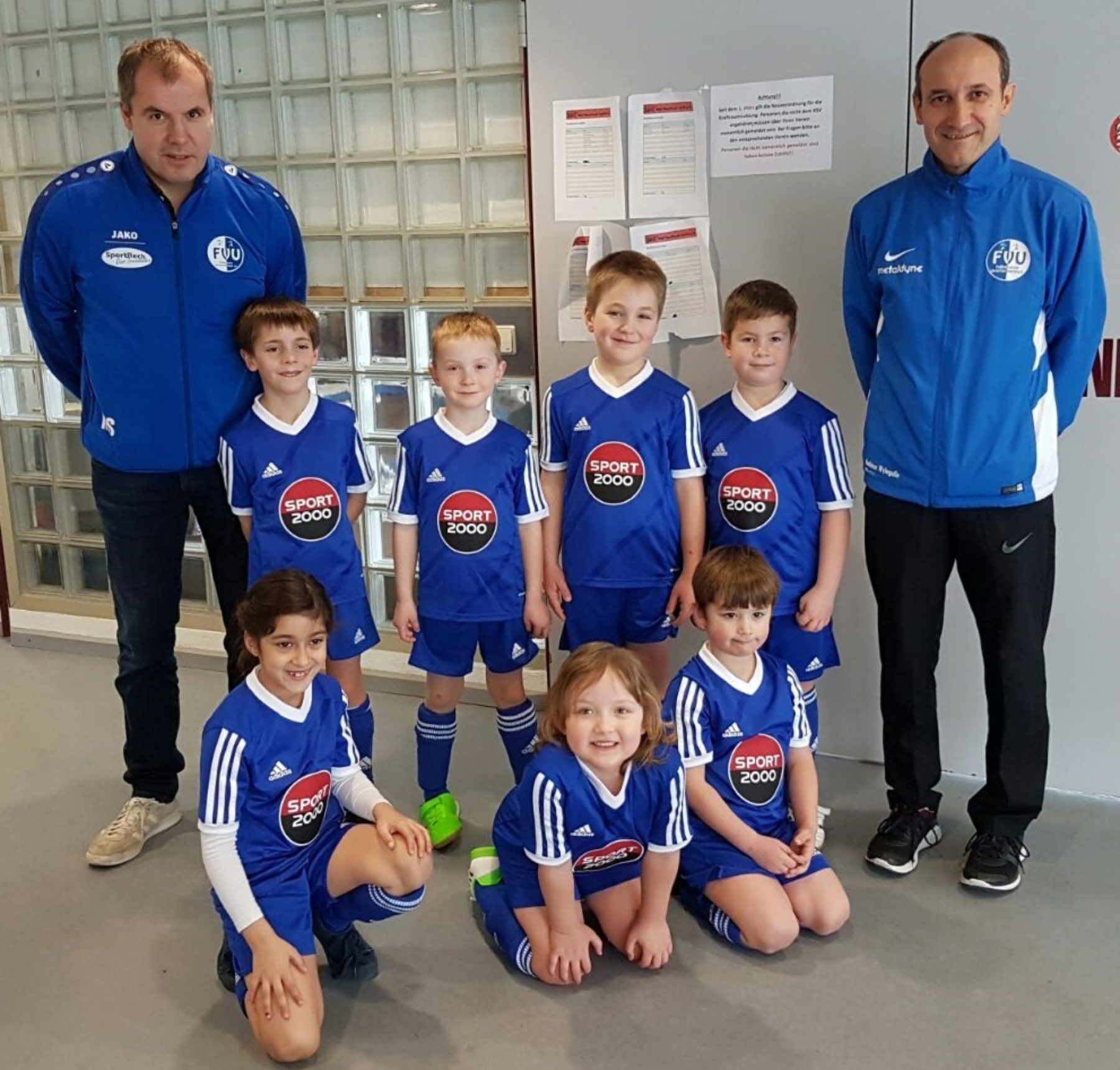 Wolfgang spendierte den F- und G-Junioren und den Trainern Trainingsanzüge mit dem FVU-Logo und den persönlichen Initialen. Sichtlich stolz nahmen die Kinder die Trainingsanzüge von ihren Betreuern in Empfang und zogen diese gleich zum traditionellen Eltern-Kind-Spiel in der Halle an.