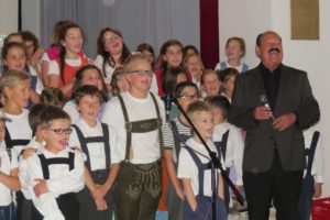 Zu dem Abschlusslied »Schwarzwald-Marie« ließ sich Hans-Peter Wagner gerne nach vorne bitten und sang mit den Kindern zusammen das typische Lied auf den Schwarzwald. Ein sehr gelungener Abschluss ohne Wehmut – die Talfinken haben mit ihrem Gesang wie immer für Fröhlichkeit und gute Stimmung gesorgt.