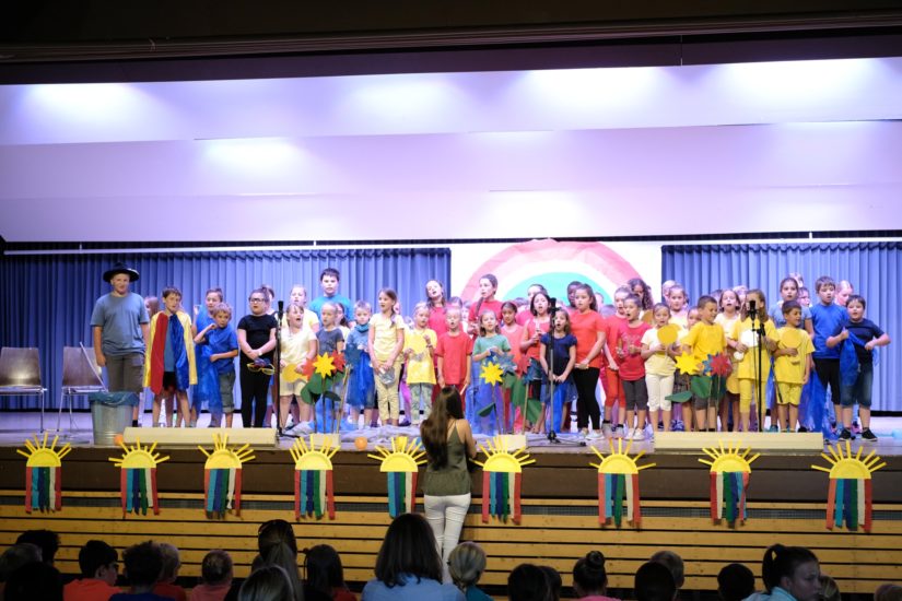 Alessa Schwörer, Klassenlehrerin der 1b und Leiterin des Schulchors, hatte das Stück ausgewählt. Zusammen mit ihr und Karin Alst übten die Kinder seit Januar jeden Dienstagmorgen eine Stunde für die große Show.