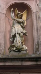 Ursprünglich war das »Kirnbacher Käpilli«, wie es im Volksmund genannt wird, eine Marienkapelle und hatte die heiligen Engel und Maria als Patronin. Später wurde sie dem Erzengel Michael geweiht. Als Schutzpatron steht er in einer Nische über dem Eingang der Kapelle mit dem Speer in der Hand als Besieger des Satans. Nach der geheimen Offenbarung des Johannes gilt Michael als der Engel, der den Satan besiegt hat und ihn auf die Erde stürzt. Zusammen mit dem heiligen Gallus, der der Legende nach das Harmersbachtal missionierte und mit dem heiligen Wendelin, dem Patron der Bauern und Hirten, steht Erz–engel Michael in der Mitte auf dem Hochaltar. Am Michaelstag, 29. September, wird seit 1760 das Patronzium, die Kirchweihe gehalten.