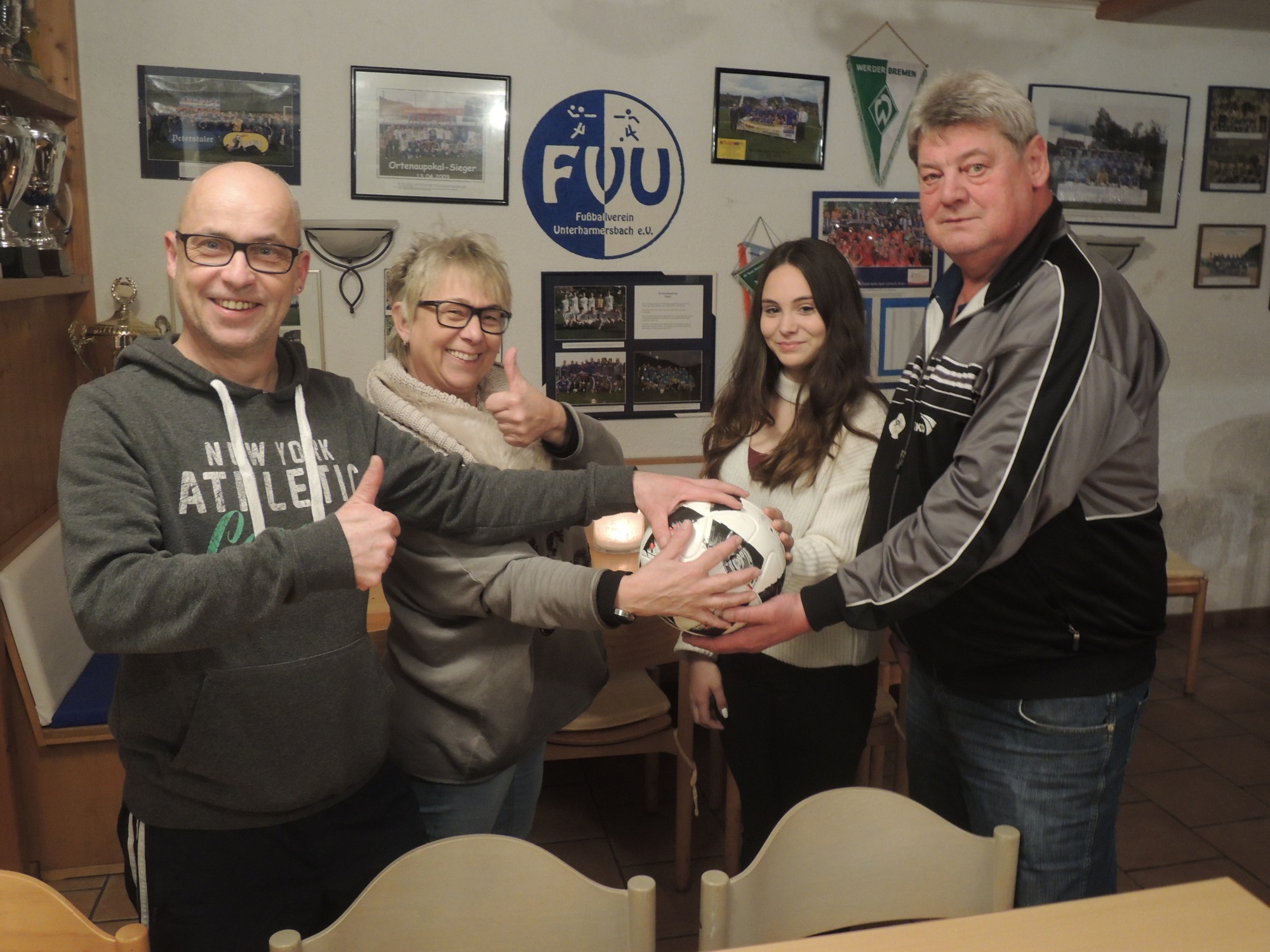Am Samstag findet das letzte Heimspiel der ersten Mannschaft des FVU für das Jahr 2017 statt. Gegner ist das Team aus Oberwolfach. Für Dagmar Schwarz war es keine Frage, den Spielball für die Partie zu spenden. Dagmar Schwarz ist seit fast einem Jahr die neue Pächterin des FVU-Clubheim, das sie zusammen mit ihrer ganzen Familie betreibt. Vor allem ihr Bruder Heinz unterstützt sie, wo er nur kann. Kein Wunder – Heinz kennt den Verein in- und auswendig. Mit den Spielern, Kindern, Eltern und weiteren Gästen hat Dagmar ein tolles Verhältnis aufgebaut. Nach einem Spiel der aktiven Mannschaften kann es vorkommen, dass bei ausgelassener Stimmung im Clubheim auch mal das Tanzbein geschwungen wird. Der FVU ist mit Dagmar Schwarz und ihrem Familien-Team sehr zufrieden. Verein und Mannschaft sagen: »Danke für die Ballspende!«