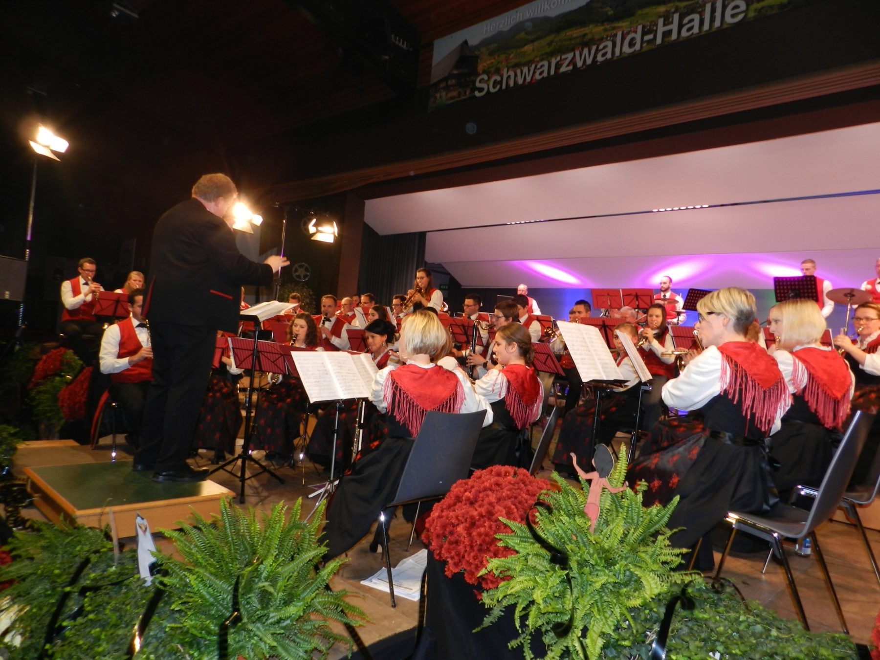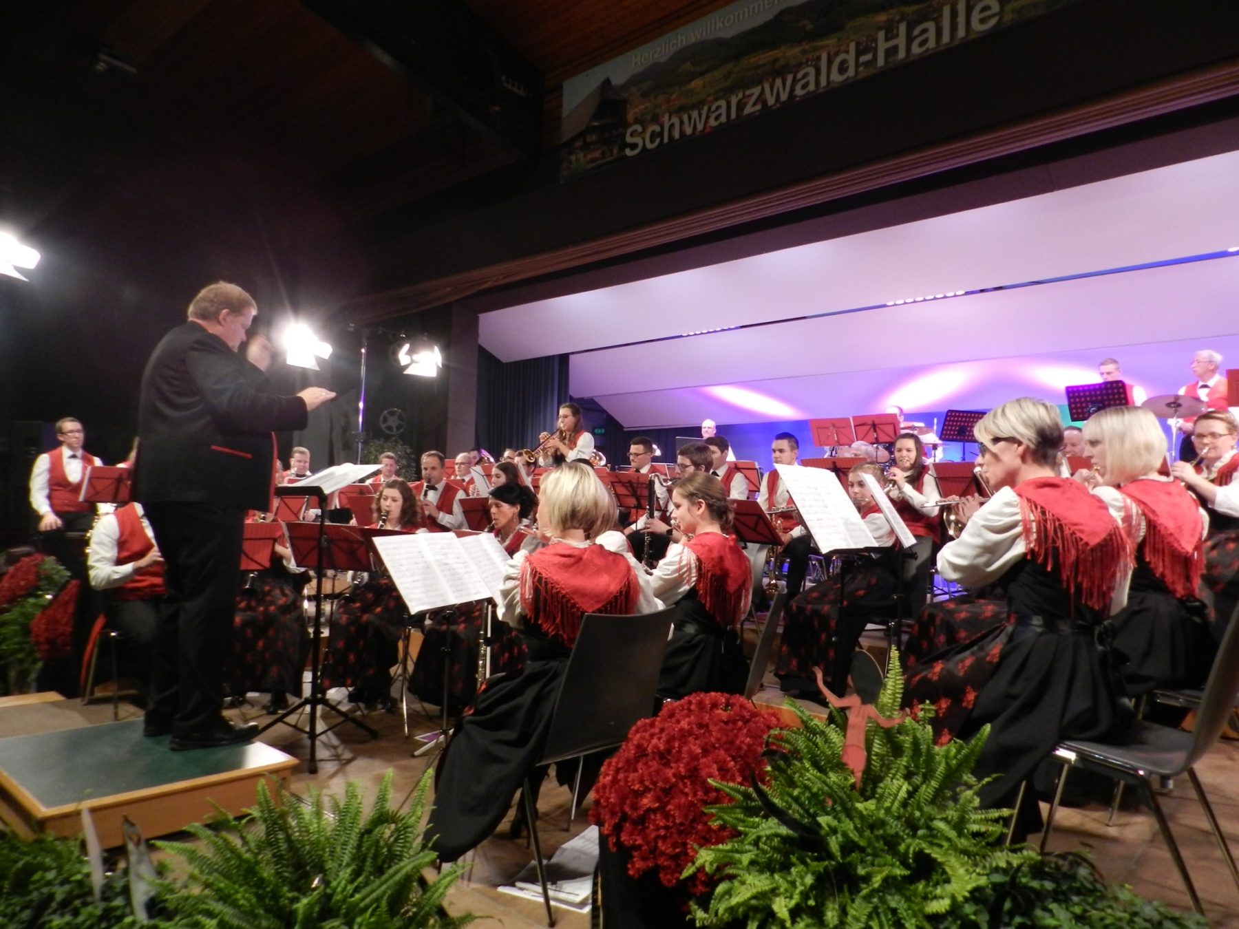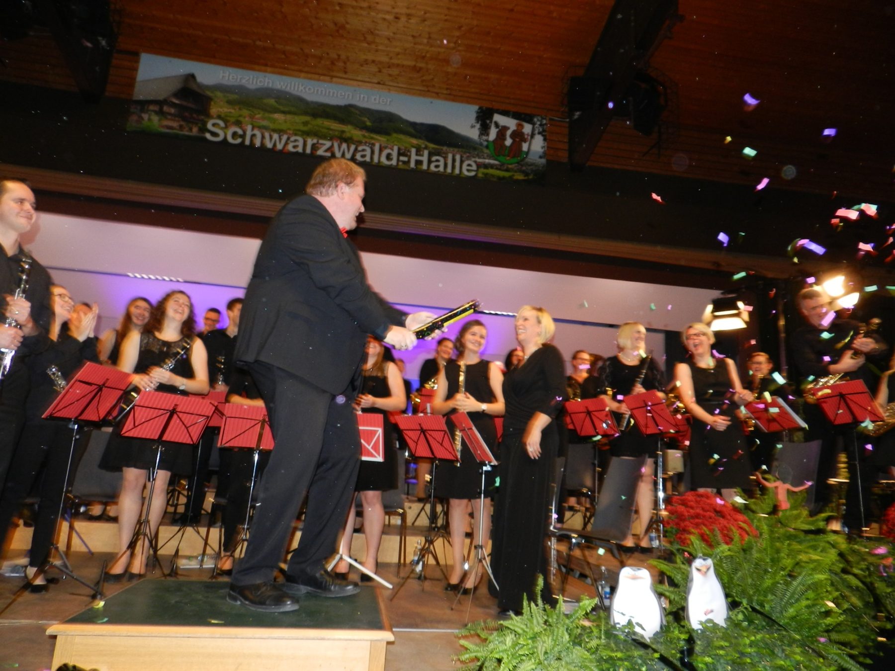 Foto: Hans-Peter WagnerDie 400 Besucher, unter ihnen Bürgermeister Pfundstein, Ortsvorsteher Wagner, Ehrenpräsident Gerhard Roth und Vizepräsident Jürgen Isenmann, waren hingerissen und dankten den 55 Musikerinnen und Musikern mit Beifallsstürmen. Sie alle erlebten ein Konzert, das auf höchstem Niveau mit Präzision, Schwung und musikalischer Leidenschaft ein außergewöhnliches Musikerlebnis bot. Den perfekten Rahmen schuf die wunderschöne Studio-Dekoration – von einer professionellen Firma mit Scheinwerfern, Ton – und Knalleffekten ins rechte Licht gesetzt.