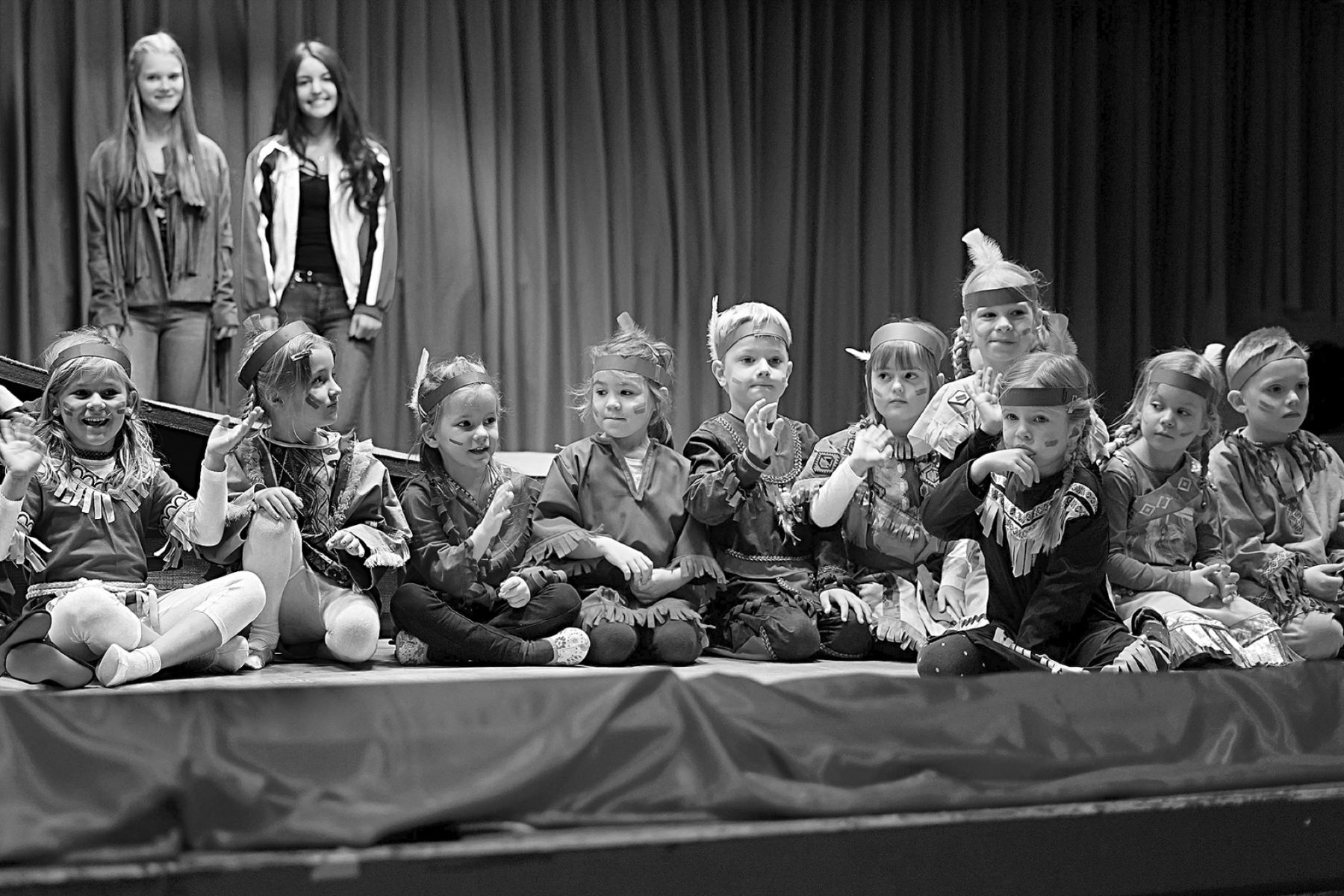 Yakari und seine zahlreichen Indianerfreunde versammelten sich auf der Bühne.