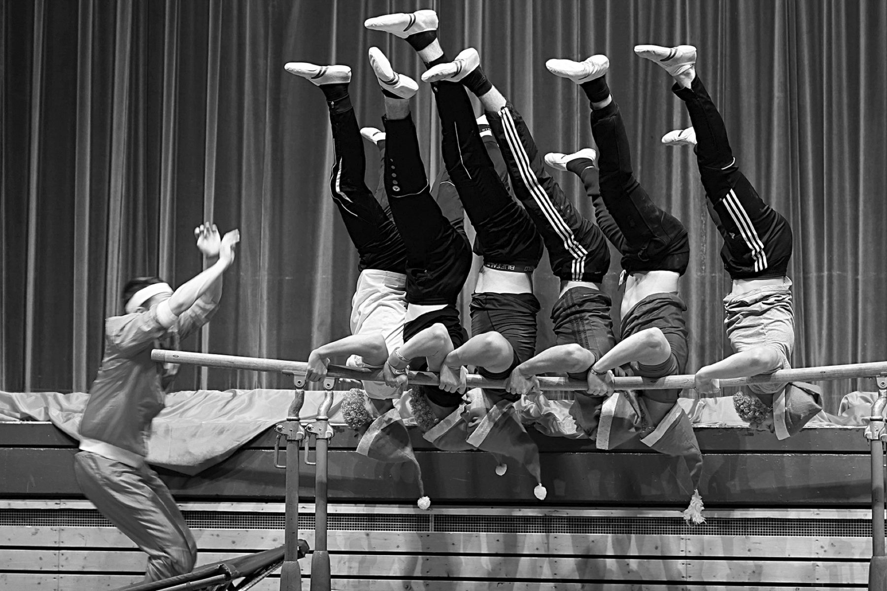 Hohes turnerisches Können erforderte die Spaßnummer der sieben Zwerge am Barren.