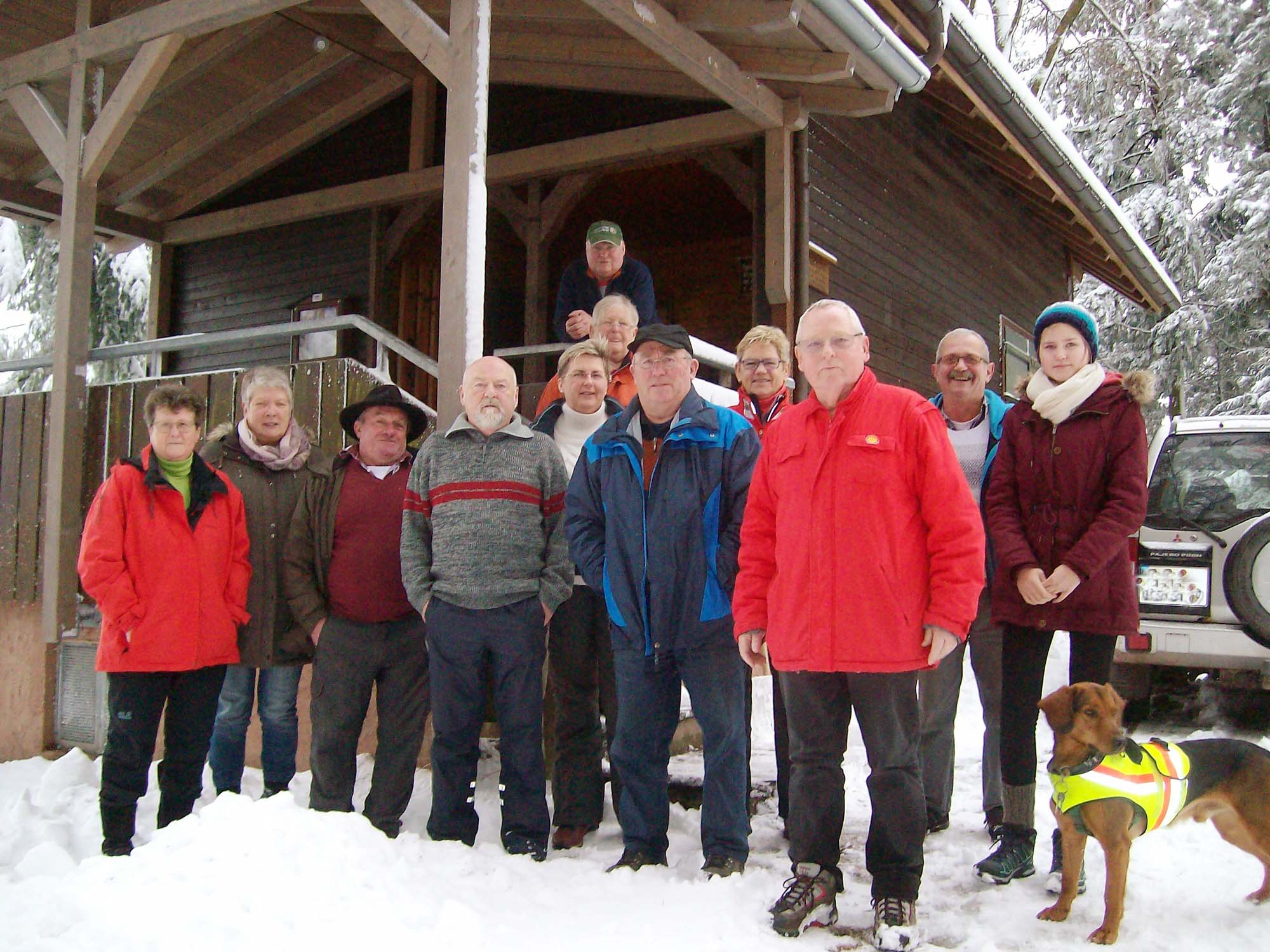 Vom Adlerspielplatz aus ging es Richtung Eckwaldpavillon, danach beim Eckbauern vorbei dem Wald entgegen. Nach etwa sieben Kilometern, wozu eine Zeit von zwei Stunden gewandert wurde, erreichte man durch die frisch verschneite Landschaft das angestrebte Ziel, die vereinseigene Kuhhornkopfhütte.