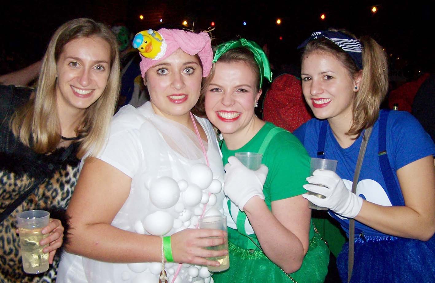 ...sowie die »Mändigs Musik« beim Hexenball im Hombe das ausgelassen feiernde Narrenvolk.
