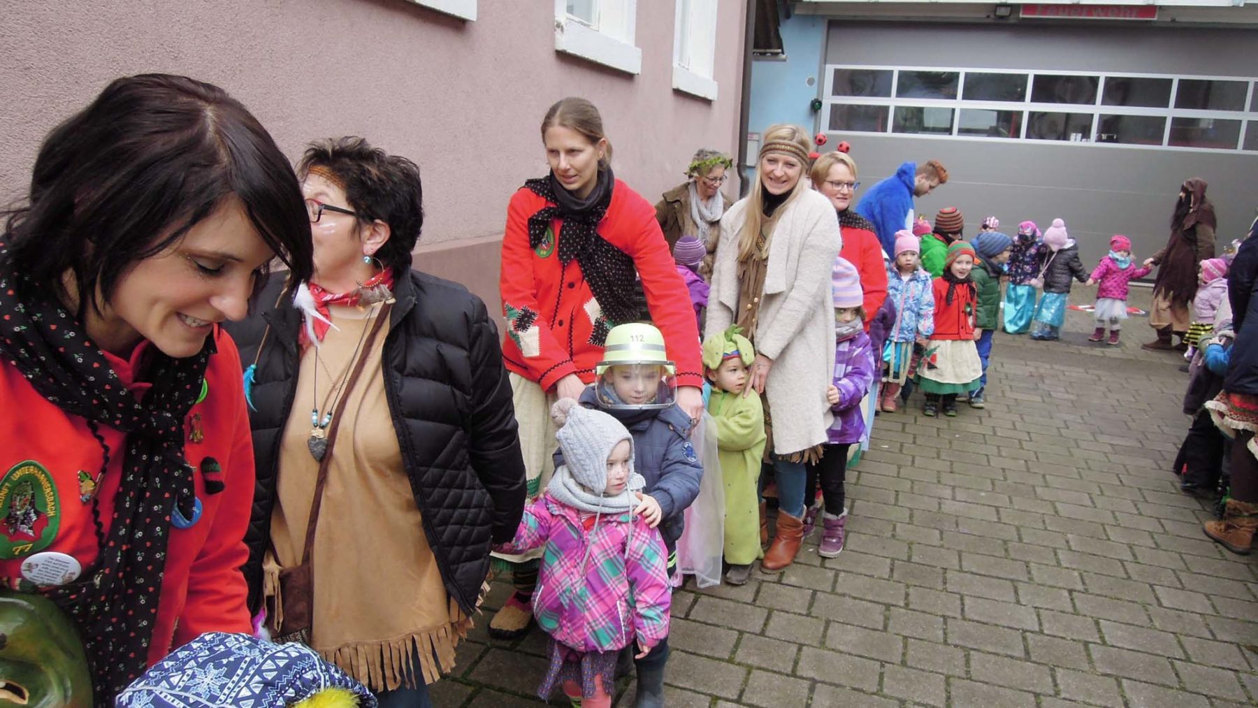 Mit einer Polonaise rund um das Rathaus wurde dieser »Sieg« gefeiert. Die Kinder bekamen von den Damen der Ortsverwaltung und der Eckwaldhexe Tanja Ernst als Stärkung süße Sachen, bevor sie sich wieder in ihre Burg, den Kindergarten, zurückzogen.