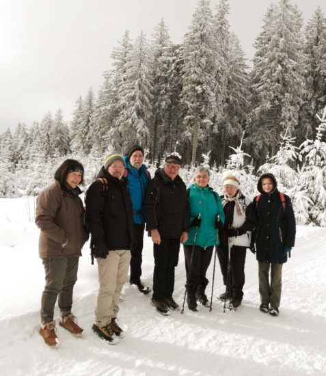 In Fahrgemeinschaften fuhren die Wanderer nach Schönwald, wo sie eine schneebedeckte Winterlandschaft erwartete. Die Wanderwege waren gut präpariert, so dass man gut vorankam. Es ging vorbei am Geburtsort der Kuckucksuhr zum Escheck, wo eingekehrt wurde. Nachdem sich alle aufgewärmt und gestärkt hatten, wurde die Wanderung Richtung Katharinenhöhe fortgesetzt. Das nächste Etappenziel war die Biathlon-Schießanlage. Der letzte Teil der dreizehn Kilometer langen Tour führte zum Kulturdenkmal »Reinertonihof« und zurück zum Ausgangspunkt.