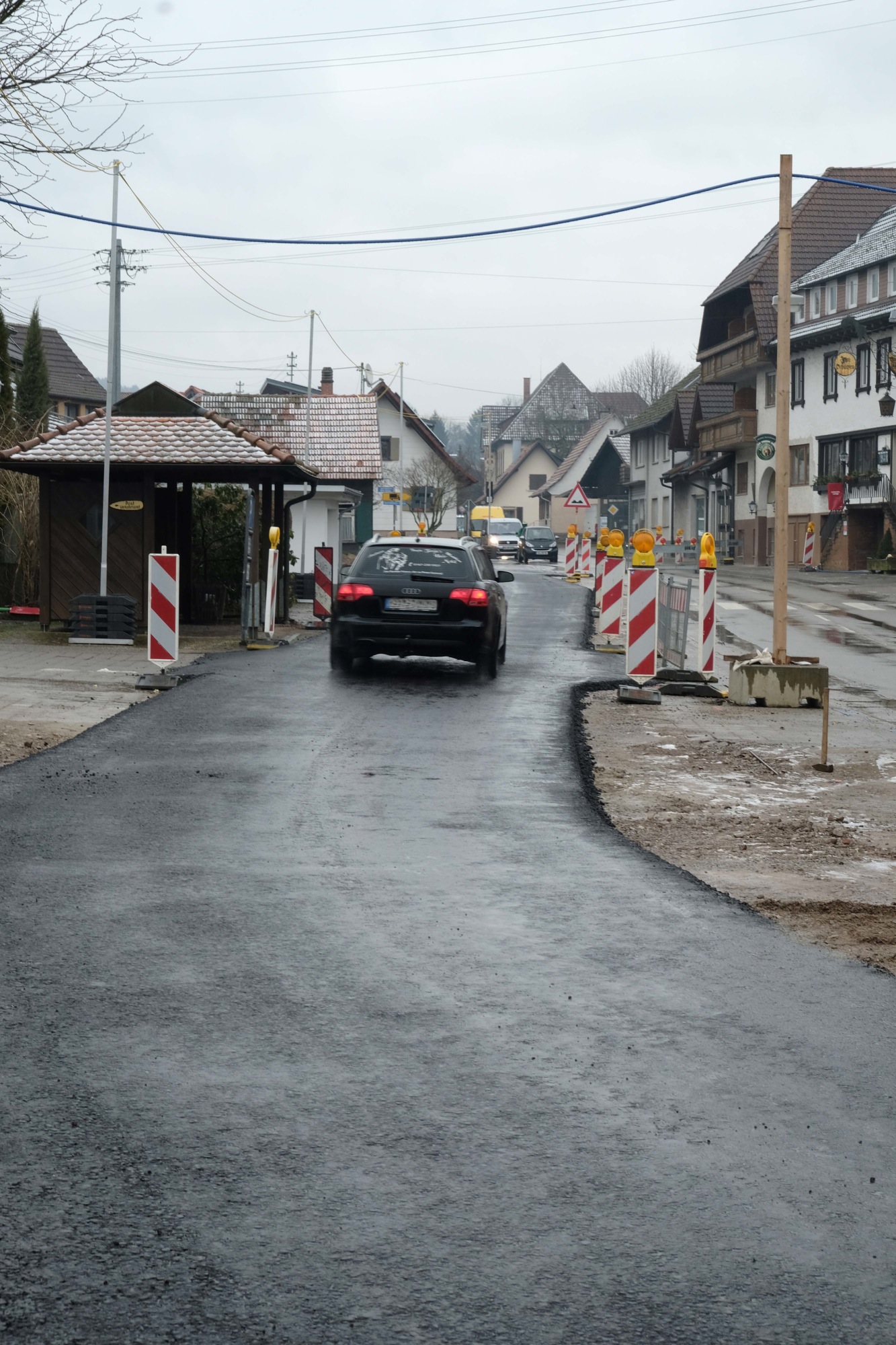 Von der Linden- bis zur Kaffeebrücke sind die Arbeiten weitgehend abgeschlossen. Nur die letzte Asphaltschicht fehlt dort noch. Diese wird jedoch erst zum Schluss und Baufeld übergreifend eingebaut. Die Fugen, die bei einem anderen Vorgehen vermehrt entstehen würden, sind wartungsintensiv, weiß der Fachmann zu berichten. Auch im Bereich Penny-Markt Unterharmersbach lief es besser als gedacht, so dass der Bereich hinter dem »Schwarzen Adler« in den letzten Tagen mit einer Asphaltdecke versehen werden konnte. Dafür arbeiteten die fleißigen Baukolonnen sogar die Fasendtage durch.