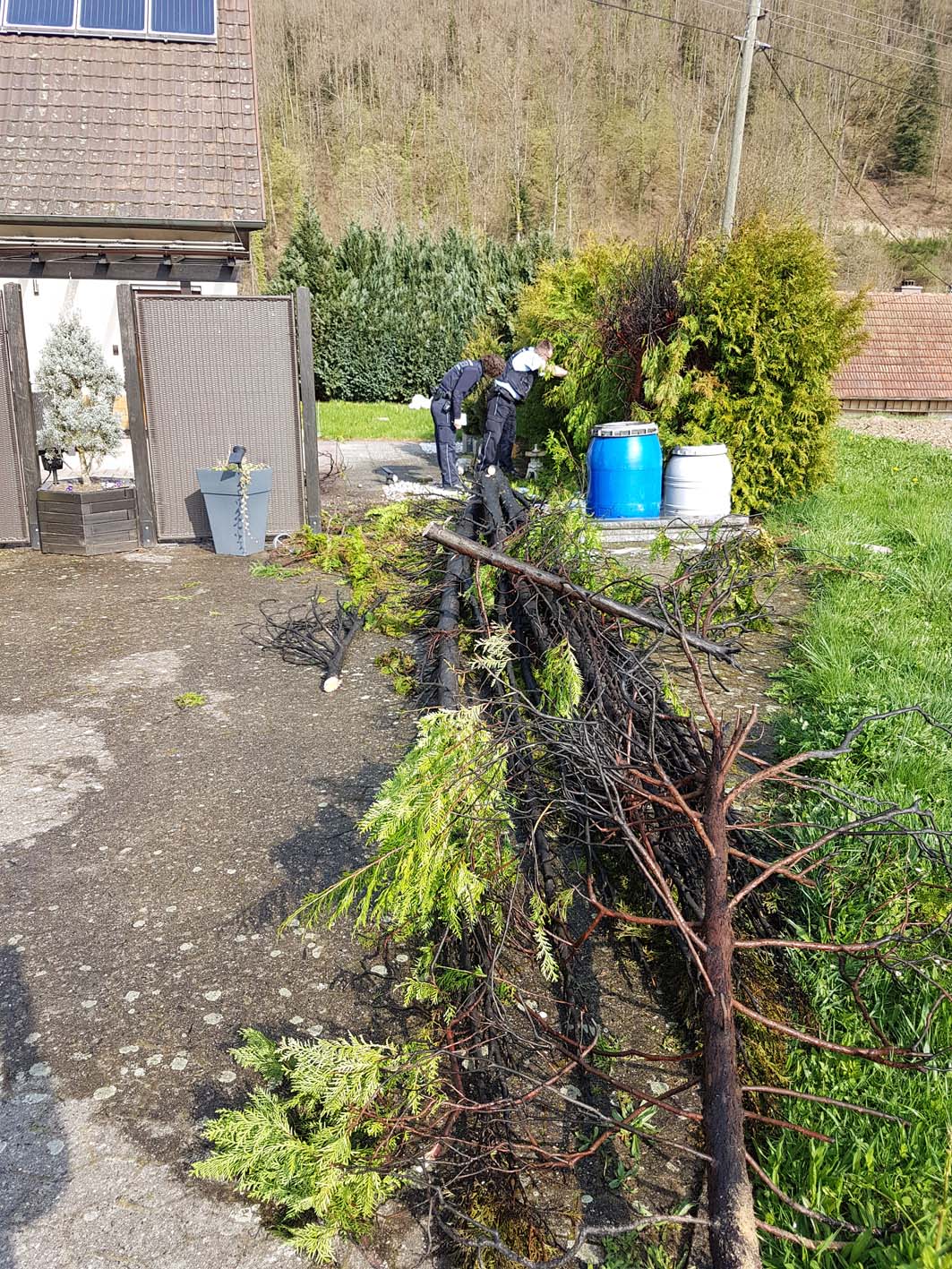 Den alarmierten Feuerwehren von Zell, Unterharmersbach und Gengenbach gelang es rasch, die Flammen zu löschen und die brennenden Büsche mit Axt und Säge von der restlichen Hecke zu trennen, damit die noch rauchenden Äste nicht weitere Heckenteile entzünden konnten.
