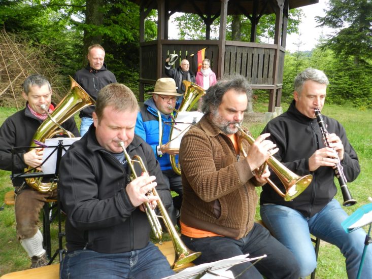 Zwar musste das Maibaumstellen auf dem Rathausplatz wegen der L94-Baustelle und wegen des durch die Bauarbeiten zu engen Zufahrtsweges ausfallen (der vorgesehene Maibaum war zu groß) Doch die Saumusik »Es rennt ä Sau de Garde na« ließ es sich nicht nehmen, wie schon zu Urzeiten, am Morgen des 1. Mai vom Eckwald-Pavillon aus unter der Leitung von »Friedel« Patrick Friedmann den Wonnemonat Mai mit frohen Weisen zu begrüßen. Die Hambacher zuhause, die ihre Fenster weit öffneten, und die Wanderer zu Tal und auf der Höhe waren von diesem musikalischen Maiengruß hoch begeistert.