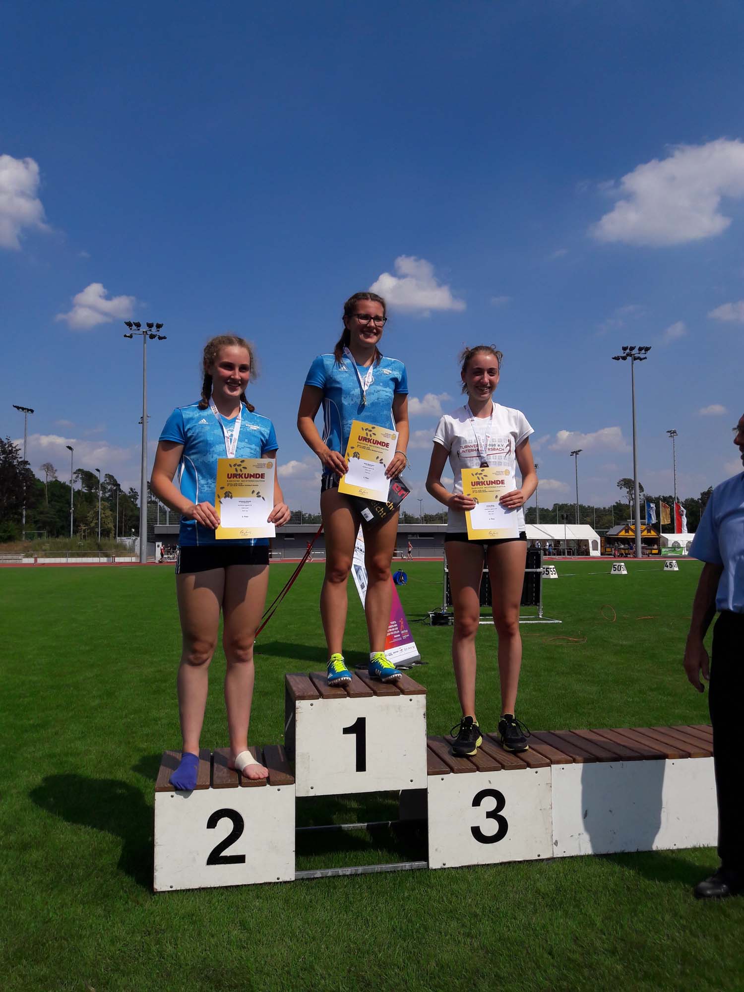 Die herausragende Leistung an diesem Tag war der Badische Meistertitel für Sina Vollmer im Dreisprung mit einer neuen Kreisrekord-Bestleistung von 10,97 Metern. Sina dominierte den Dreisprungwettkampf von Beginn an und konnte sich im Wettbewerb von Sprung zu Sprung immer weiter steigern.